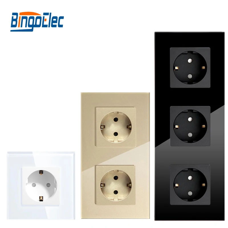 Bingoelec Одиночная розетка, Хрустальная стеклянная панель 16 А, двойная настенная розетка, тройная настенная розетка