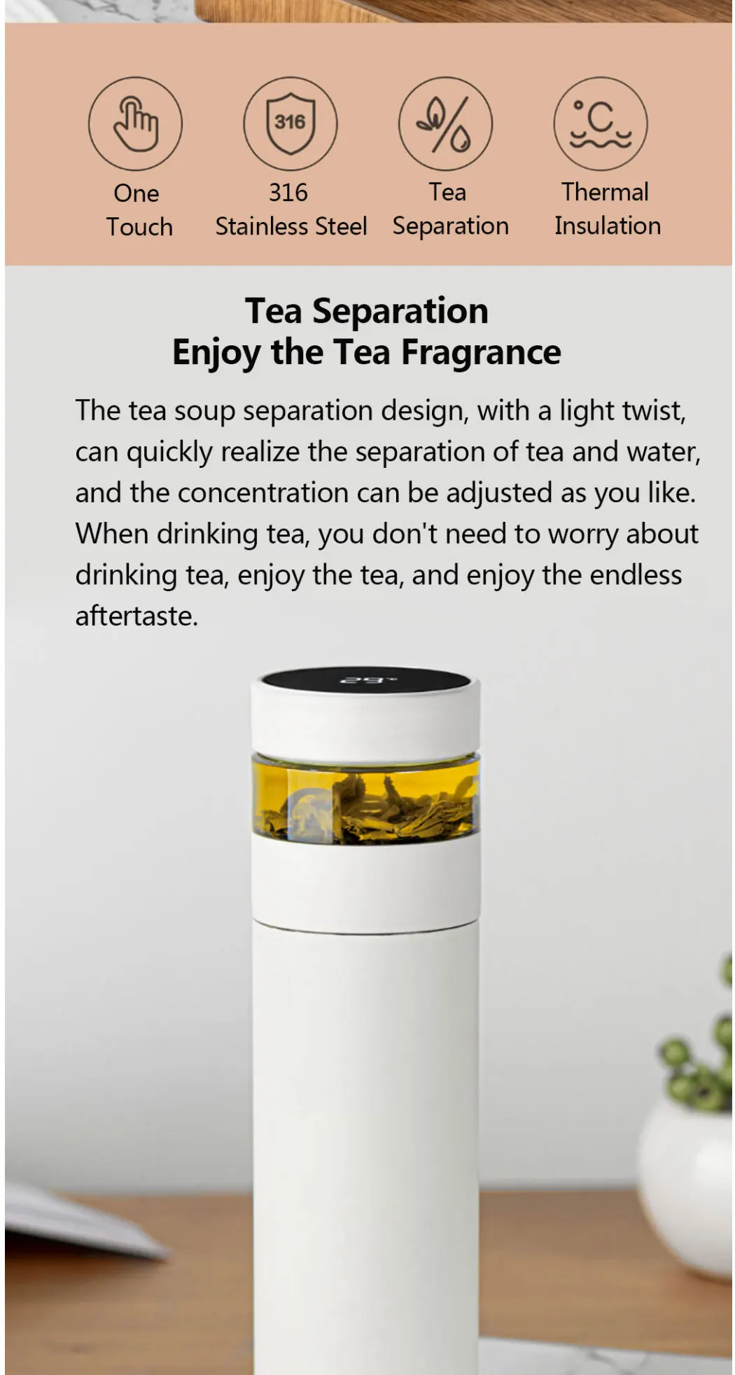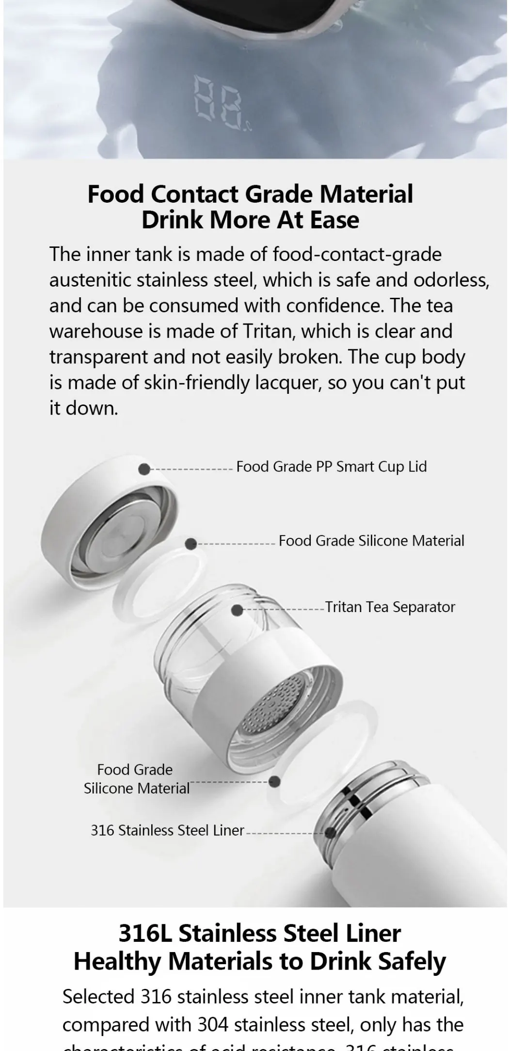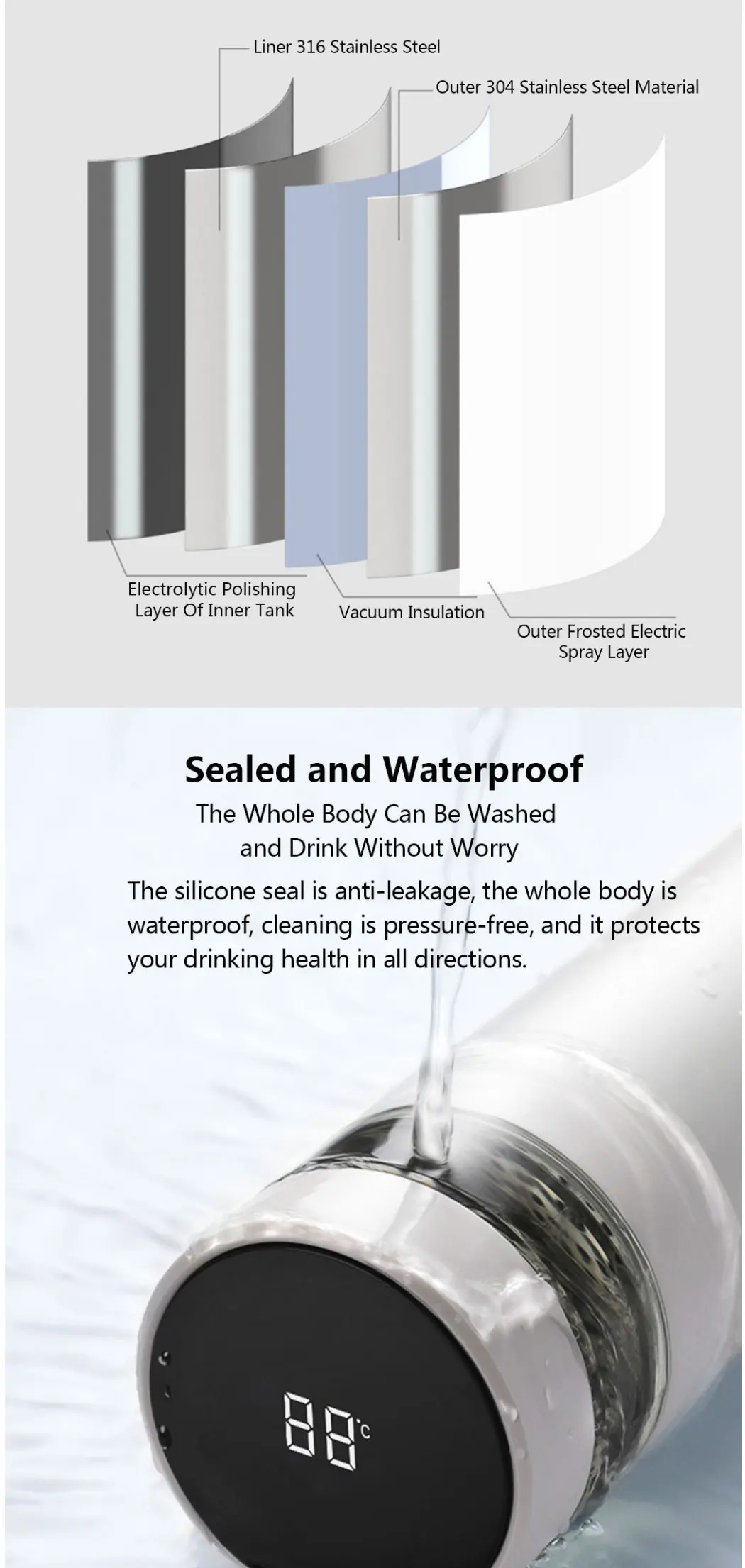 Термос Youpin, чашка, термос из нержавеющей стали, кружка, умный светодиодный сенсорный цифровой дисплей, термометр для путешествий, разделение воды и чая