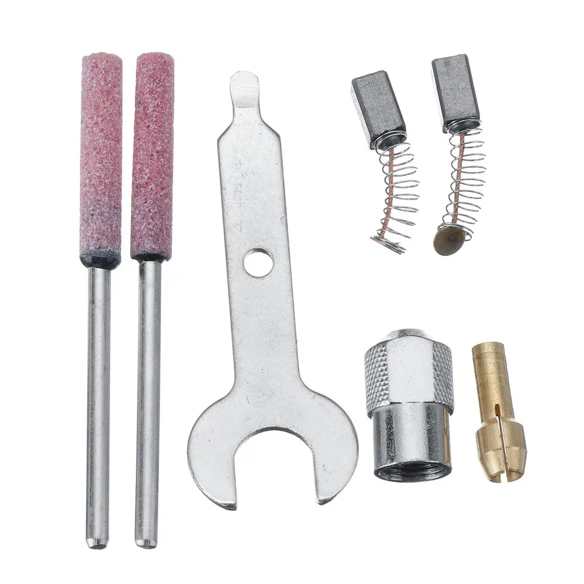 Посылка включает в себя:1х точилка для бензопилы2x Шлифовальная головка цепи2x углеродная щетка2x рощи1 гаечный ключ1x многофункциональный патрон1 медный патрон