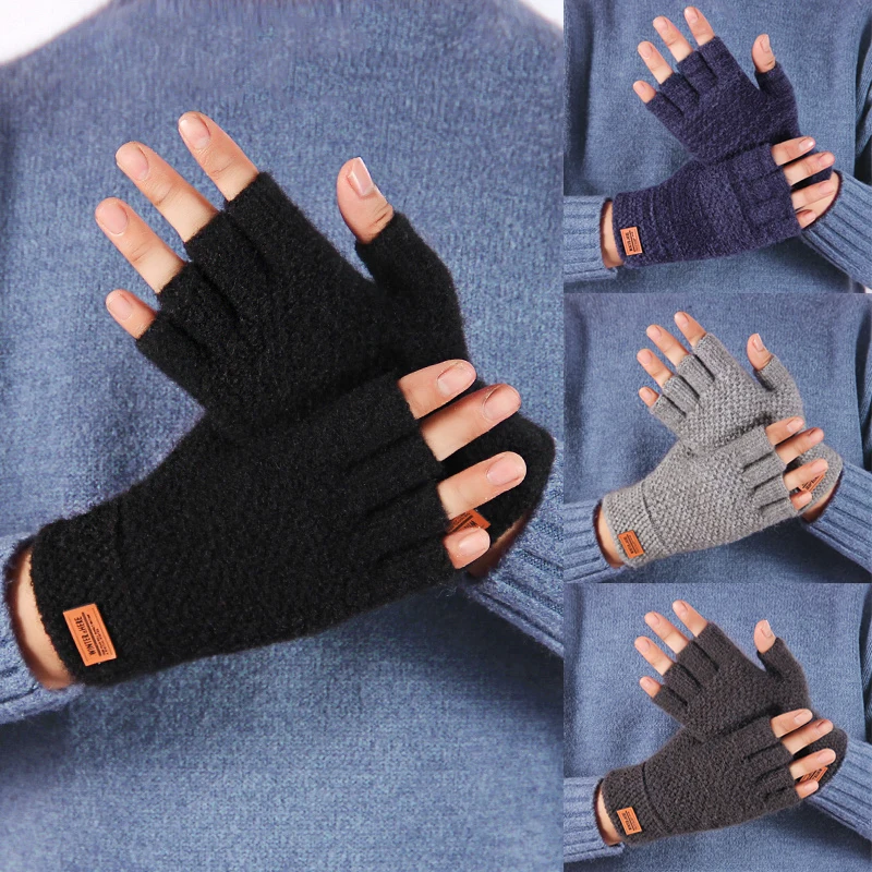 Зимние перчатки без пальцев для мужчин, вязаные перчатки с открытым...