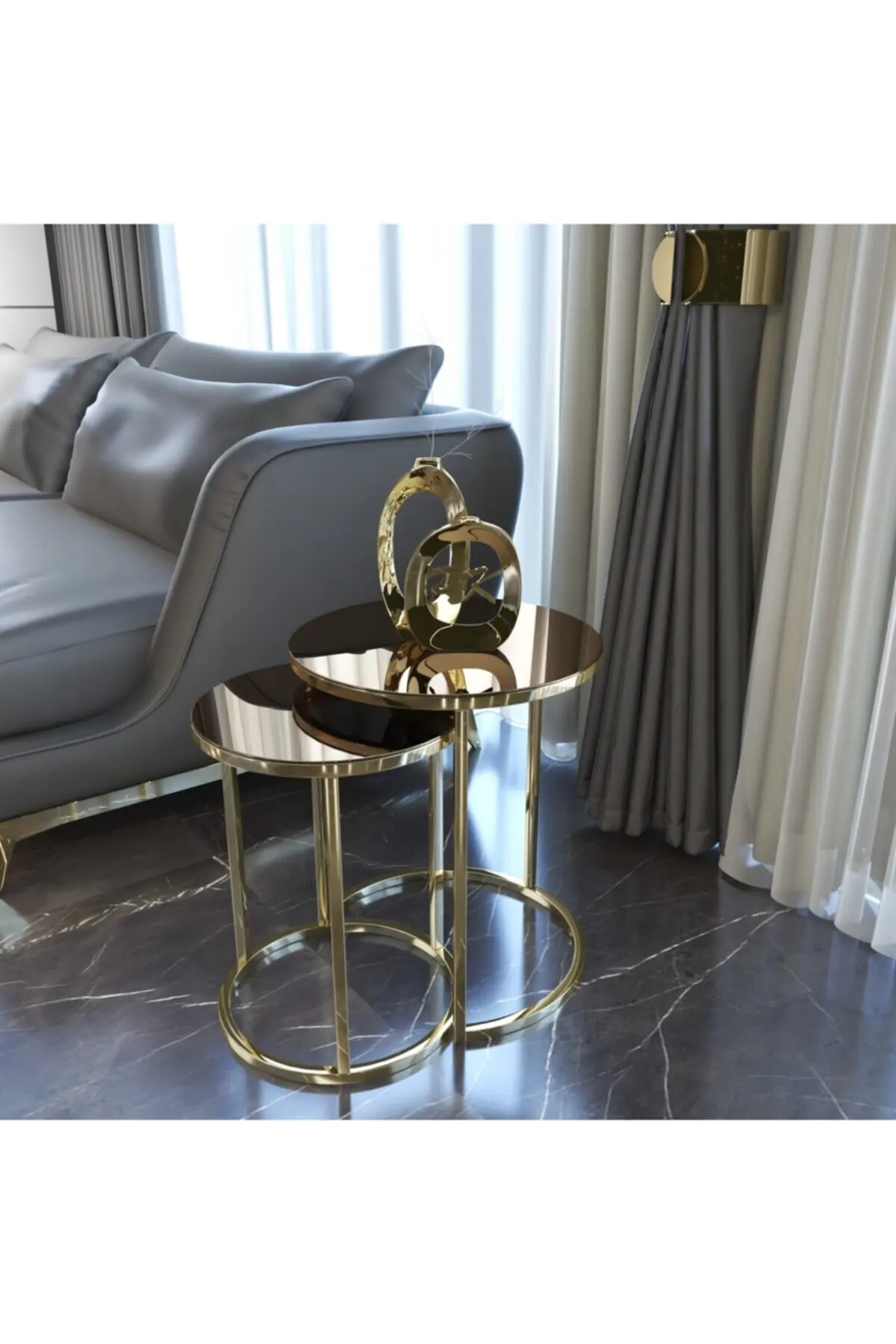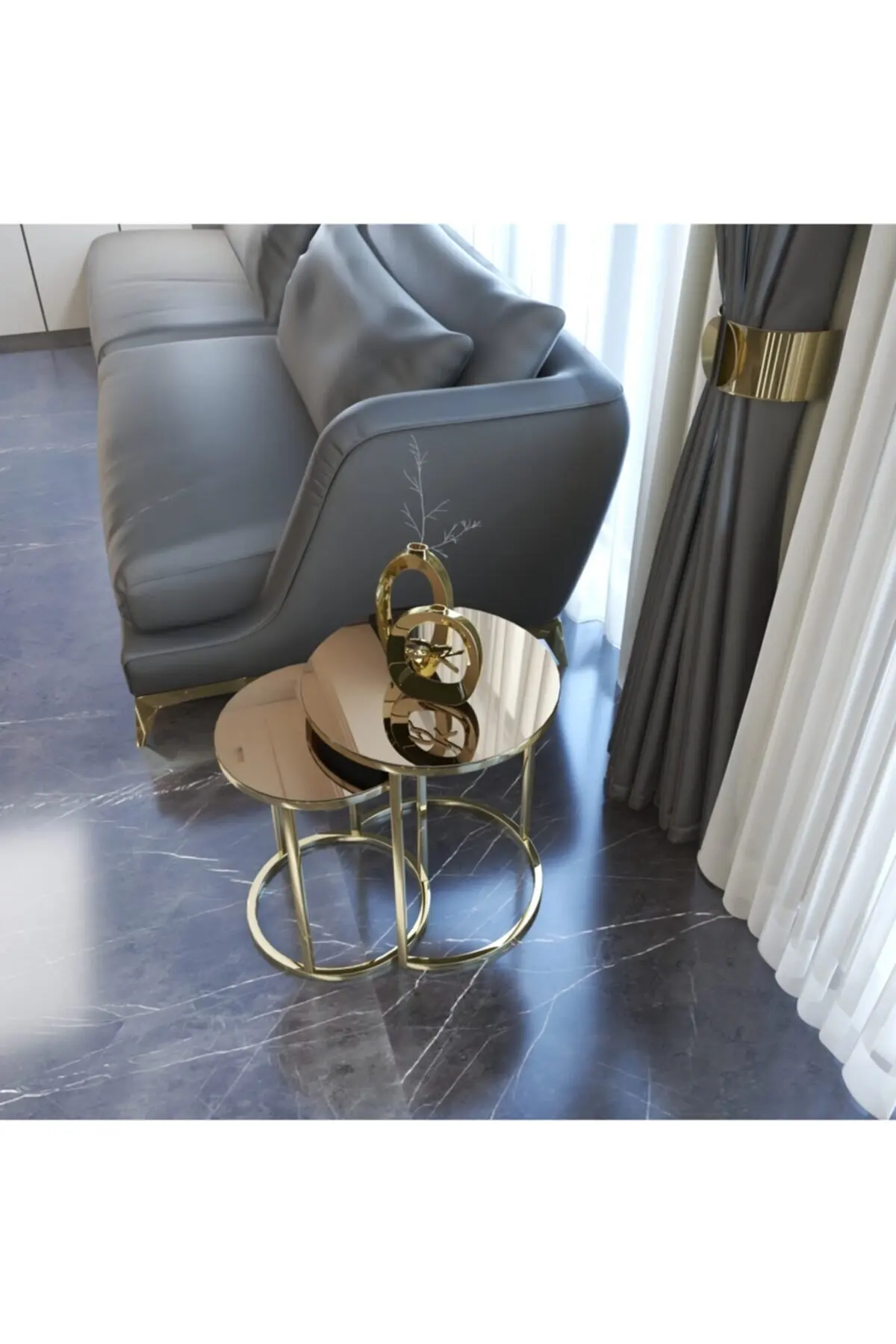 Золотистый металлический стеклянный журнальный столик, 2 предмета, скандинавские журнальные столики, ночная тумбочка, чайный журнальный столик, Круглый прикроватный столик для гостиной