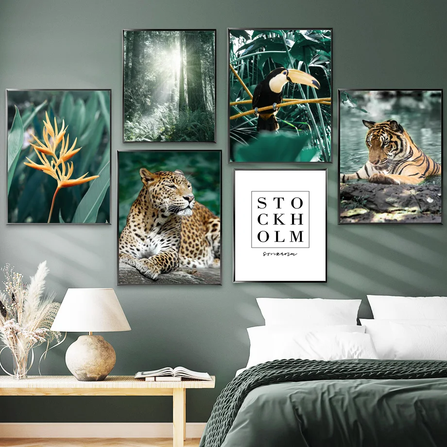Настенная картина с леопардовым тигром в виде тукан, искусство на холсте, скандинавские плакаты и принты, настенные картины для декора гостиной