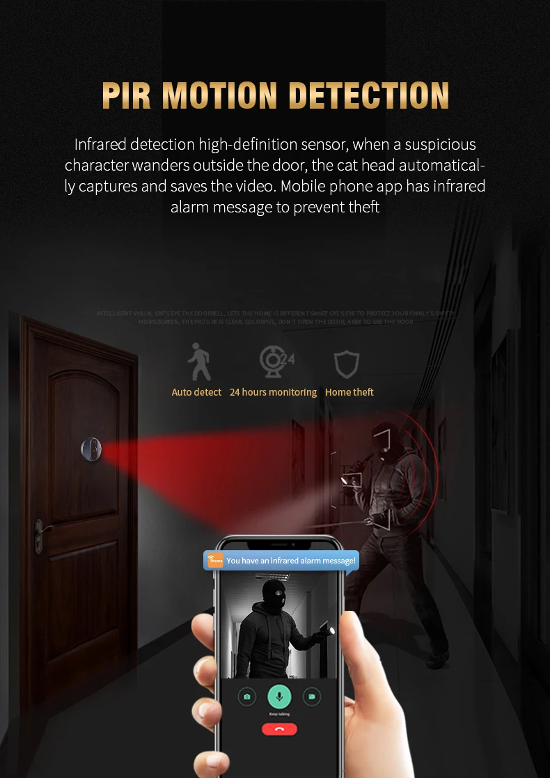 Умный дверной звонок с Wi-Fi, HD видео, глазок для дверного звонка,...