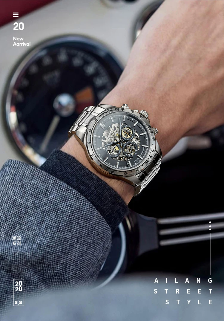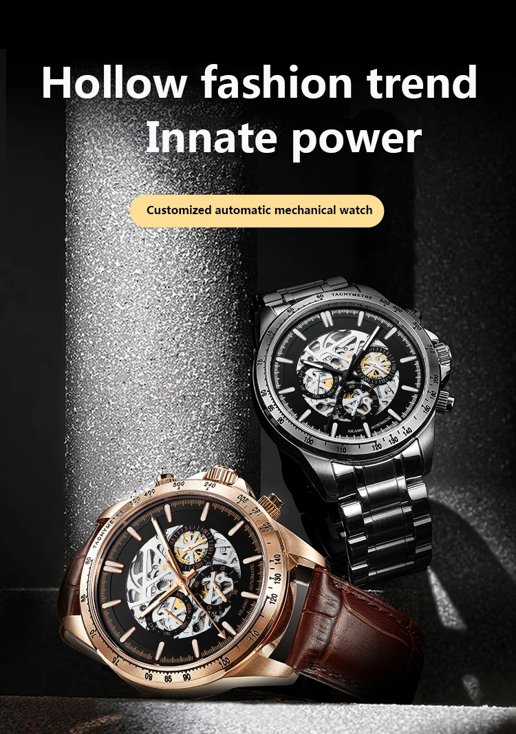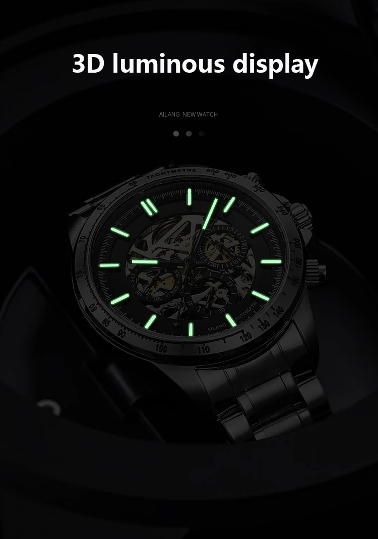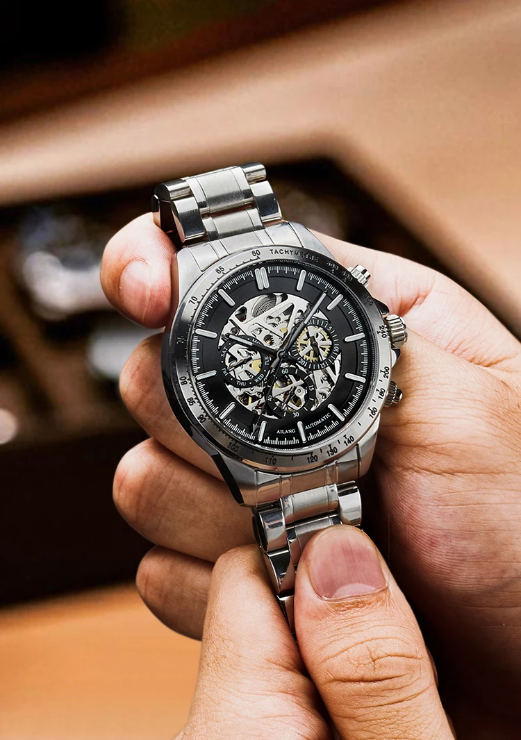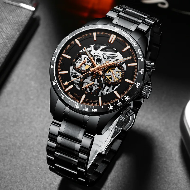 Часы наручные AILANG Мужские автоматические механические, брендовые модные светящиеся водонепроницаемые в стиле стимпанк с тремя отверстиями, 8827B