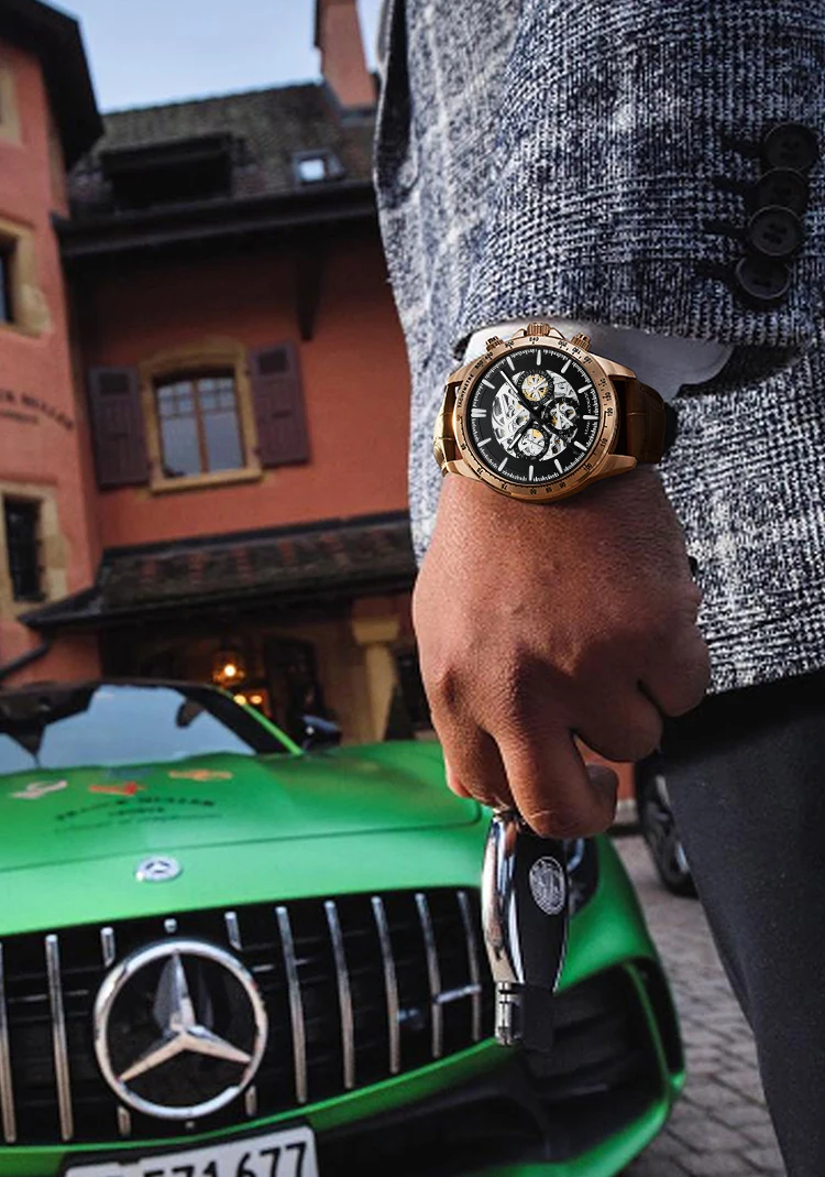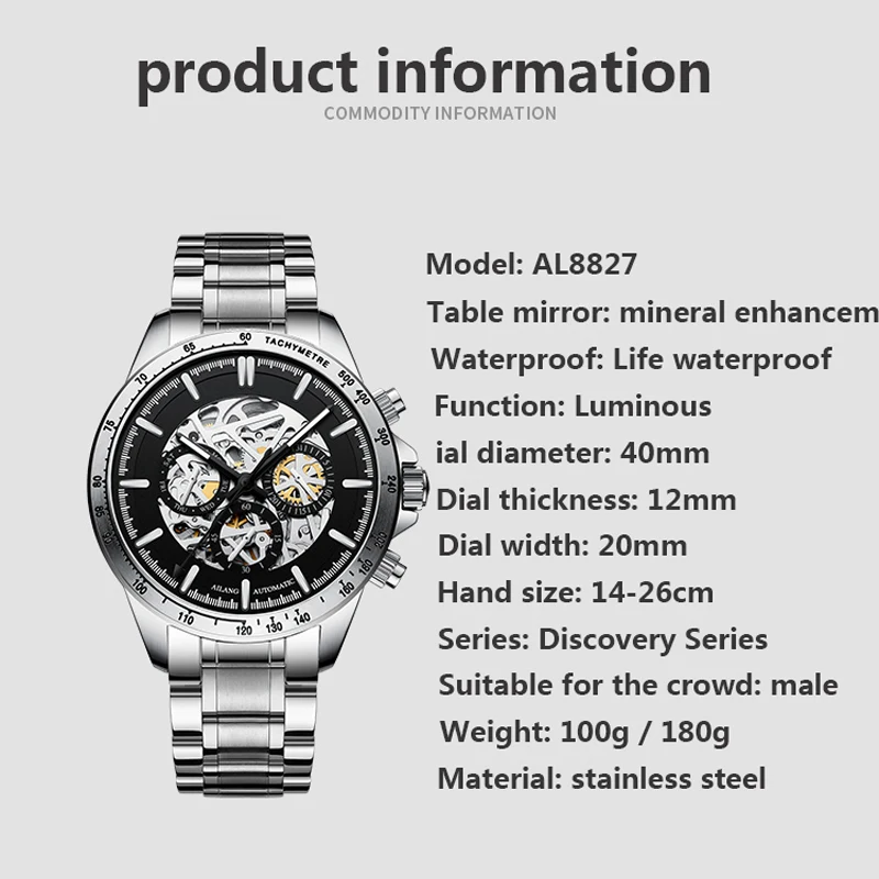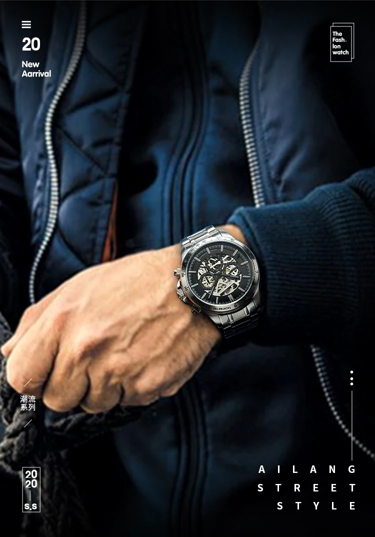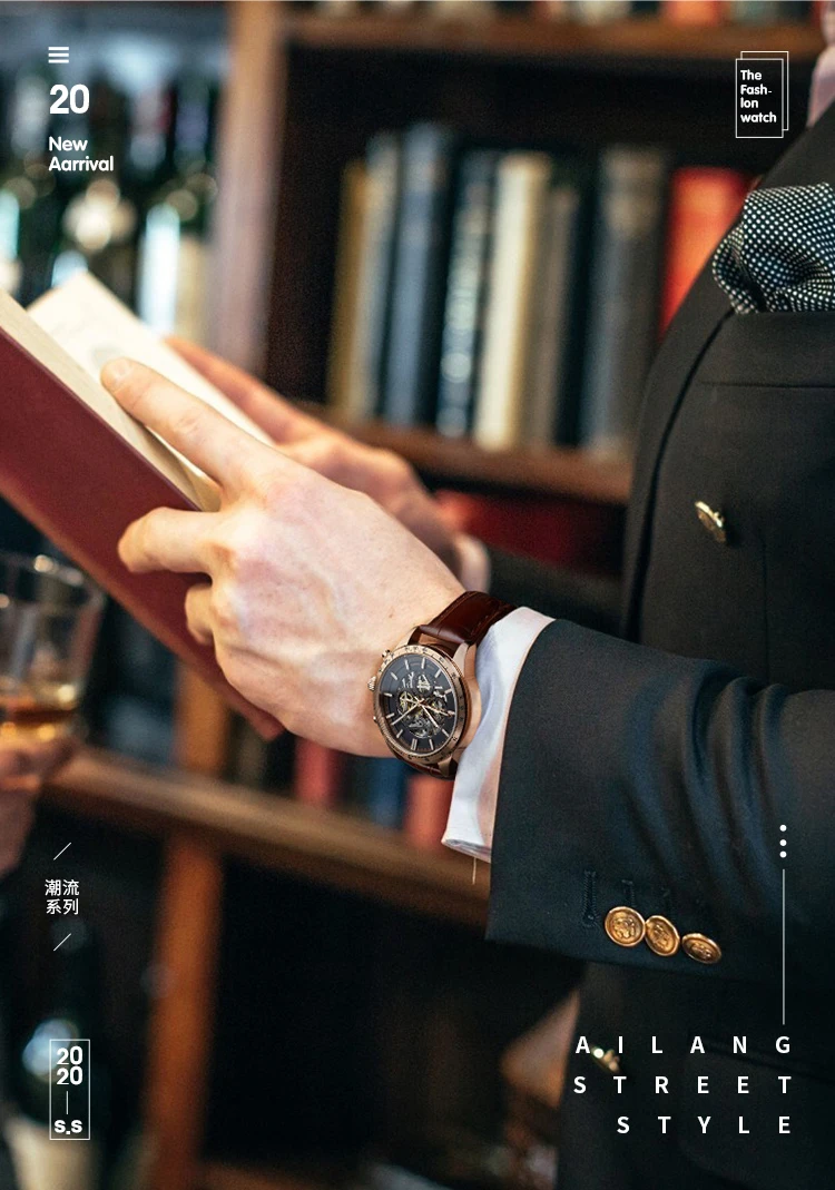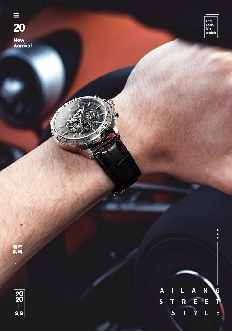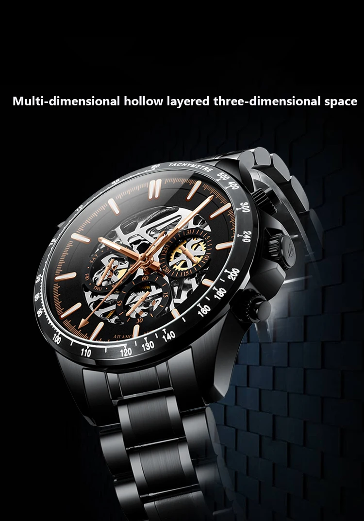 Часы наручные AILANG Мужские автоматические механические, брендовые модные светящиеся водонепроницаемые в стиле стимпанк с тремя отверстиями, 8827B
