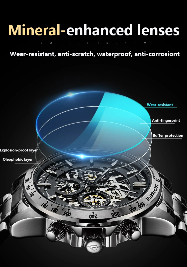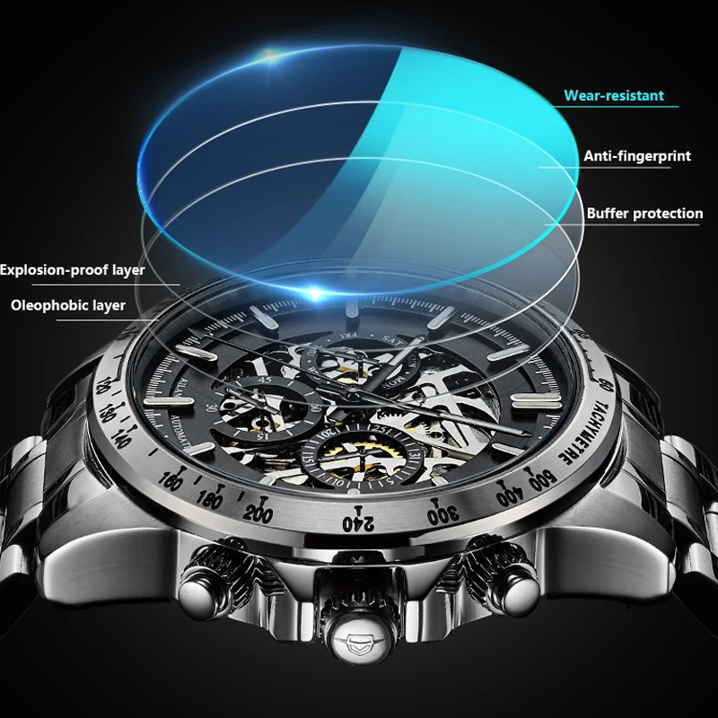Часы-скелетоны Мужские механические, из нержавеющей стали