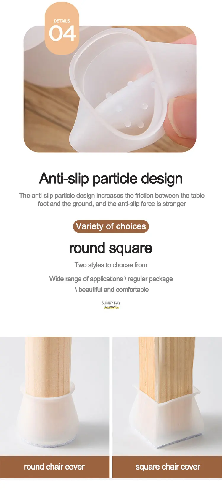 100% новый товар высокого качества. Материал: Прочный браслет из мягкого силикона, нетоксичный, безопасный для детей и домашних животных. Защита пола, противоскользящие колпачки для ног стула могут защитить как ножки стула, так и пол от повреждений. Нескользящие накладки на нижние стулья, предотвращают появление царапин и шума. И силиконовые защитные прокладки позволяют вашему стулу/столу плавно скользить. Официальный магазин Xiaomi Легко использовать, не нужно прилипать, просто обернуть и не легко отвалиться. Гибкий силиконовый защитный чехол легко надевается, благодаря чему ножка стула плотно прилегает, как перчатка. Мягкий материал, подходит для ног стула различной формы. Официальный магазин Xiaomi Прочный браслет из мягкого силикона, 100% нетоксичный, безопасный для детей и домашних животных, подходит для многих видов мебели ножки: стул для столовой, барный стул, патио стул, кухонный стул, металлические стулья для бистро, стол стул и т. Д. Широкое использование: подходит для многих видов мебели: стул для столовой, барный стул, стул для патио, кухонный стул, металлические стулья для бистро, стол и т. Д. Официальный магазин Xiaomi Размер (прибл.): Круглый (большой) 3,8x3,4x3 см Круглый (маленький) 2.8x2.4x2.8cm Квадратный (большой) 3.8x3.4x3.1см Квадратный (маленький) 2.8x2.4x2.8cm Посылка включает: Защитная крышка для стула стола