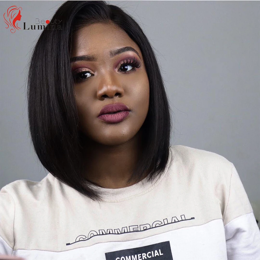 Парик с боковой частью, короткий, прямой, короткий, L часть, парики из человеческих волос, естественный цвет, бразильские волосы Remy, парик для женщин 8-12 дюймов