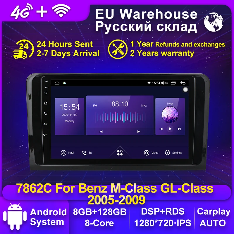 Android 11 DSP IPS автомобильное радио для Mercedes-Benz M-Class W164 GL-Class X164 ML GL ML350 ML500 GL3 4G LTE BT GPS навигационный плеер автомагнитола магнитола для авто 2дин android Аудио для авто магнитола
