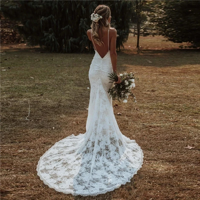 Женское свадебное платье со шлейфом и V-образным вырезом