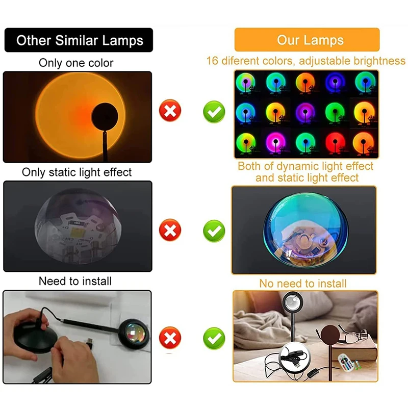 Есть 5 видов популярных ламп заката для вас на выбор: