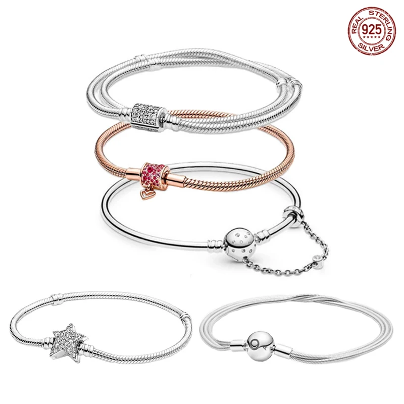 Pan-Style 925 Серебряная цепочка со змеиным плетением, женский брас...
