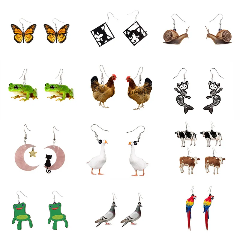 2022 Милые акриловые женские серьги с бабочкой лягушкой котом модные красочные маленькие животные мотылька голубь подвеска серьги для девочек Забавные ювелирные изделия