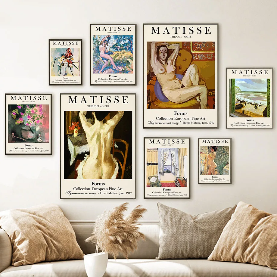 Винтажные цветочные вазы матиссе для девочек, абстрактные скандинавские постеры и принты, настенная живопись на холсте, настенные картины для декора гостиной