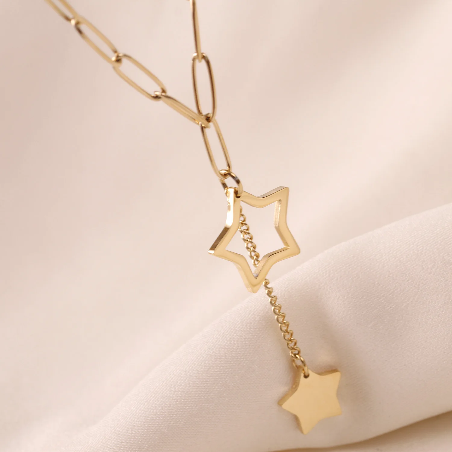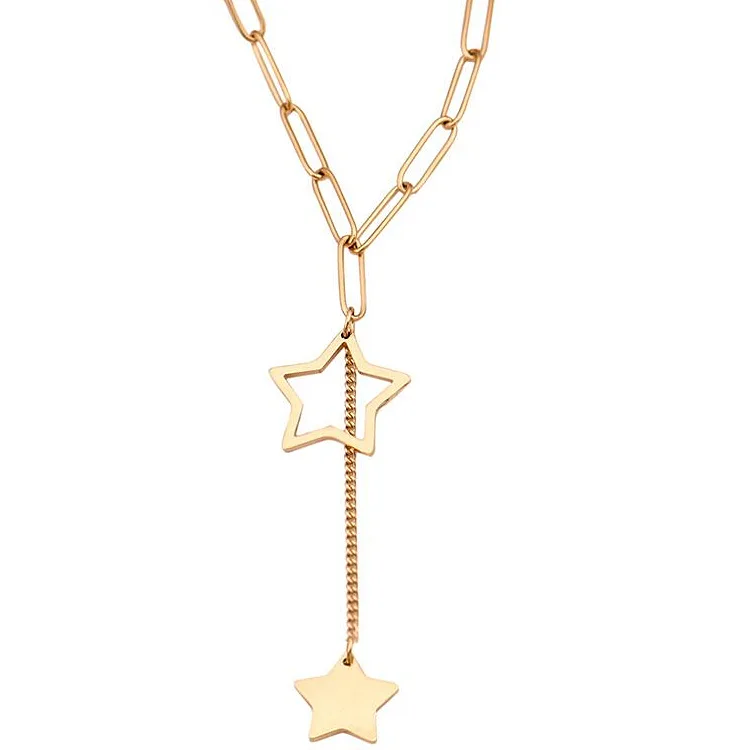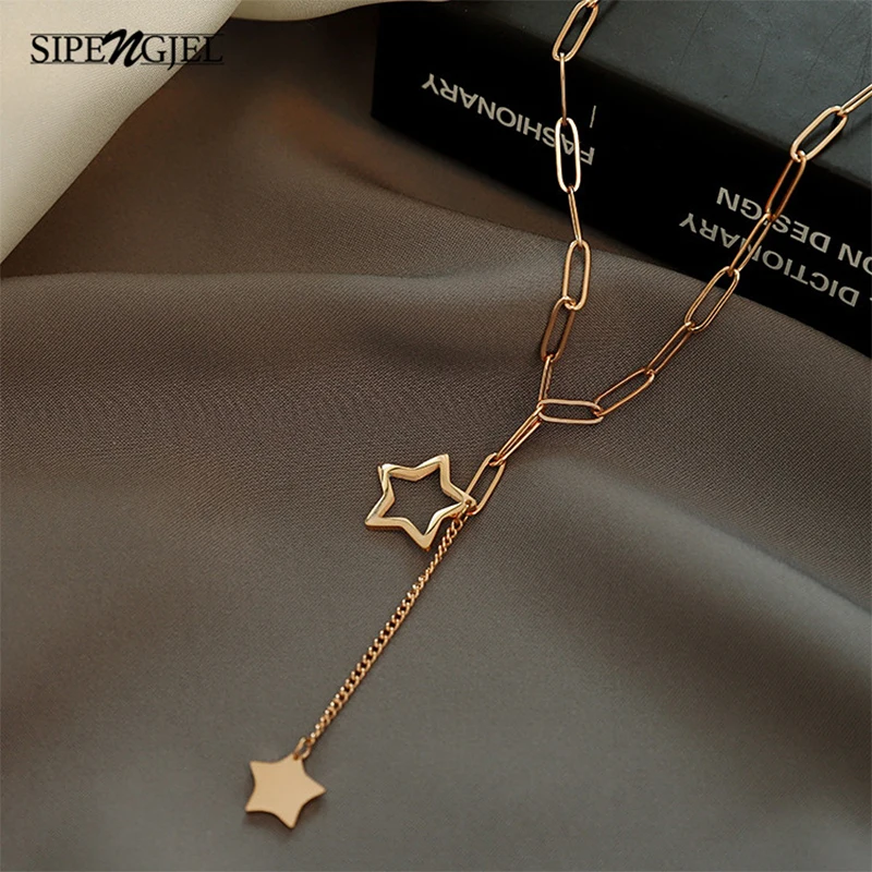SIPENGJEL модный двойной кулон, длинная цепочка, звезды, ожерелье с подвеской простое, полое, дизайн, нержавеющая сталь, ожерелье для женщин