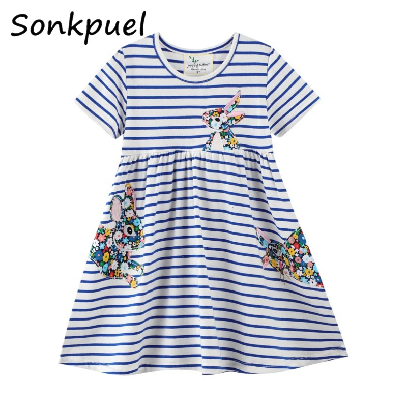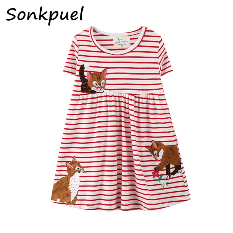 Одежда для девочек, весенне-Летнее Детское милое Хлопковое платье, ...