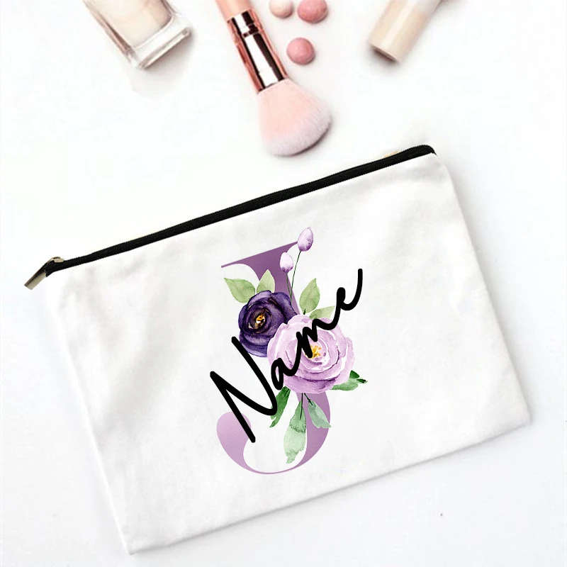 Персональная Цветочная косметичка с именем на заказ, сумка для путе...