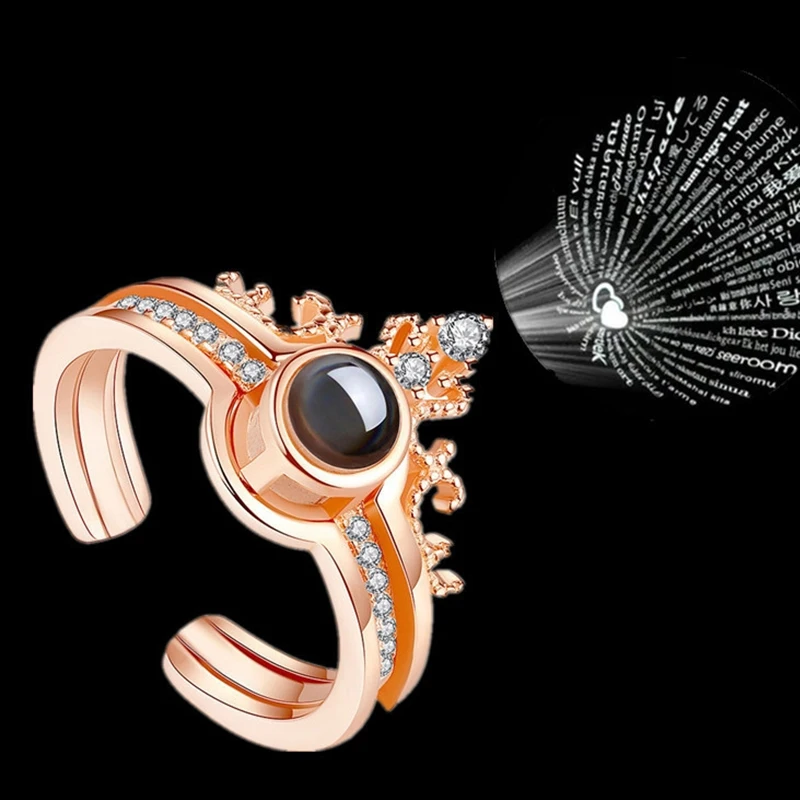 Роскошное женское свадебное кольцо в комплекте, модное кольцо с проекцией на 100 языках Я тебя люблю, романтическое кольцо с памятью для влюбленных, ювелирное изделие