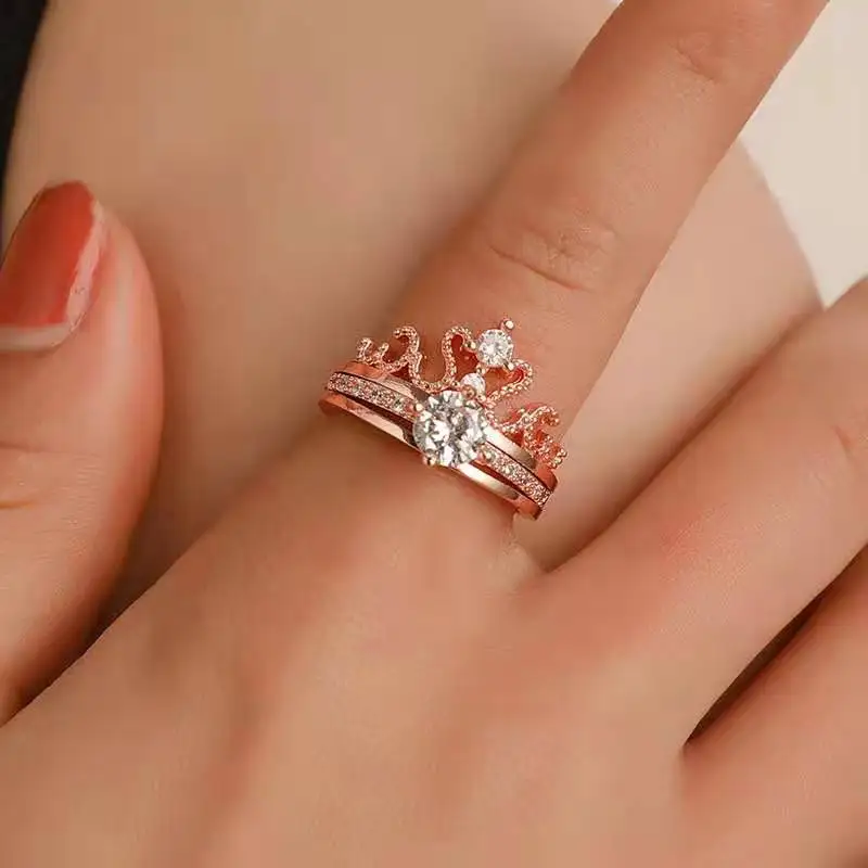 Женское кольцо с короной Два в одном, кольцо с надписью Я тебя любл...
