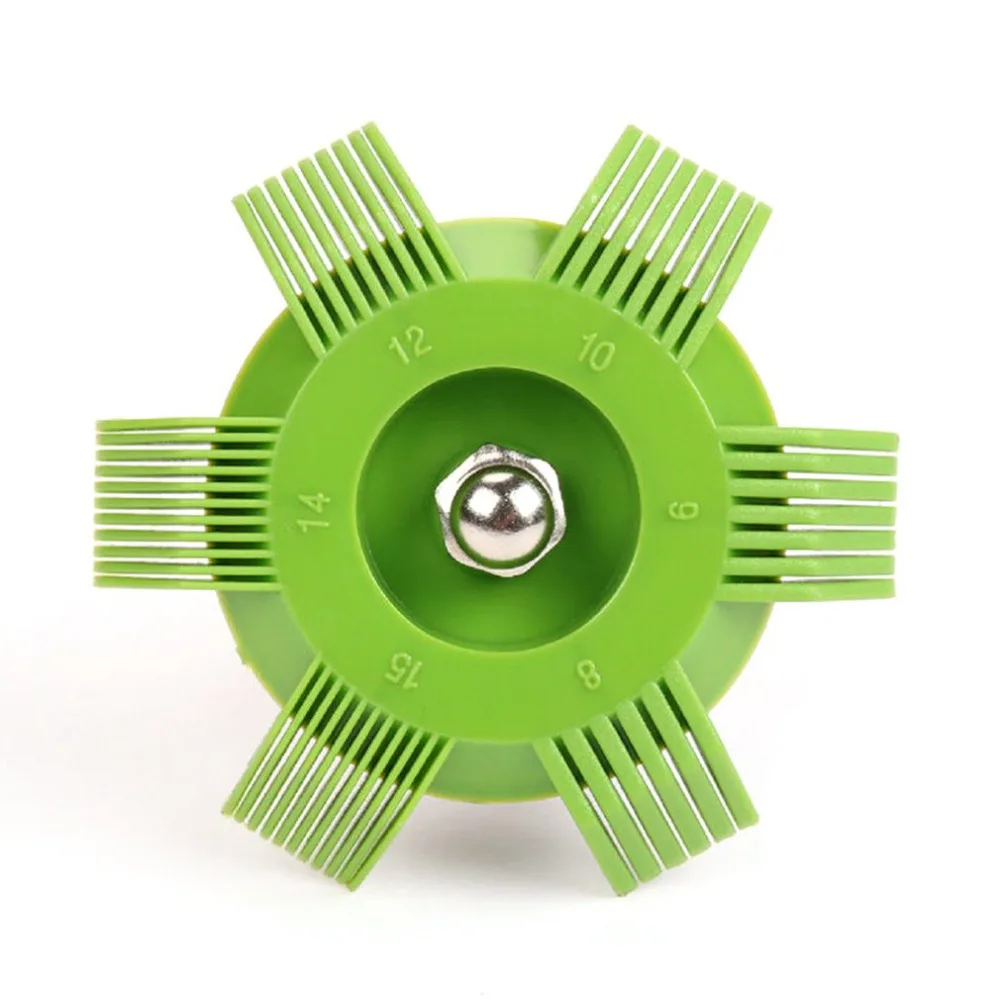 Очистка и выпрямление конденсатора и испарителя катушкиЭта расческа для плавников очищает и выпрямляет согнутые ребра за считанные секунды, чтобы помочь сохранить поток воздуха, чтобы ваша система хорошо работала.Этот удобный выпрямитель для плавников также может использоваться на масляных охладителях и конденсаторах кондиционера.Материал: пластикЦвет: белый и зеленыйРасческа диаметр: 8,2 смВысота ручки: 10,2 см