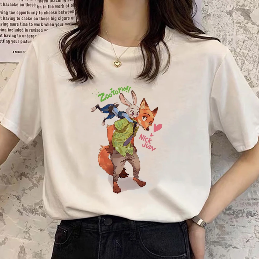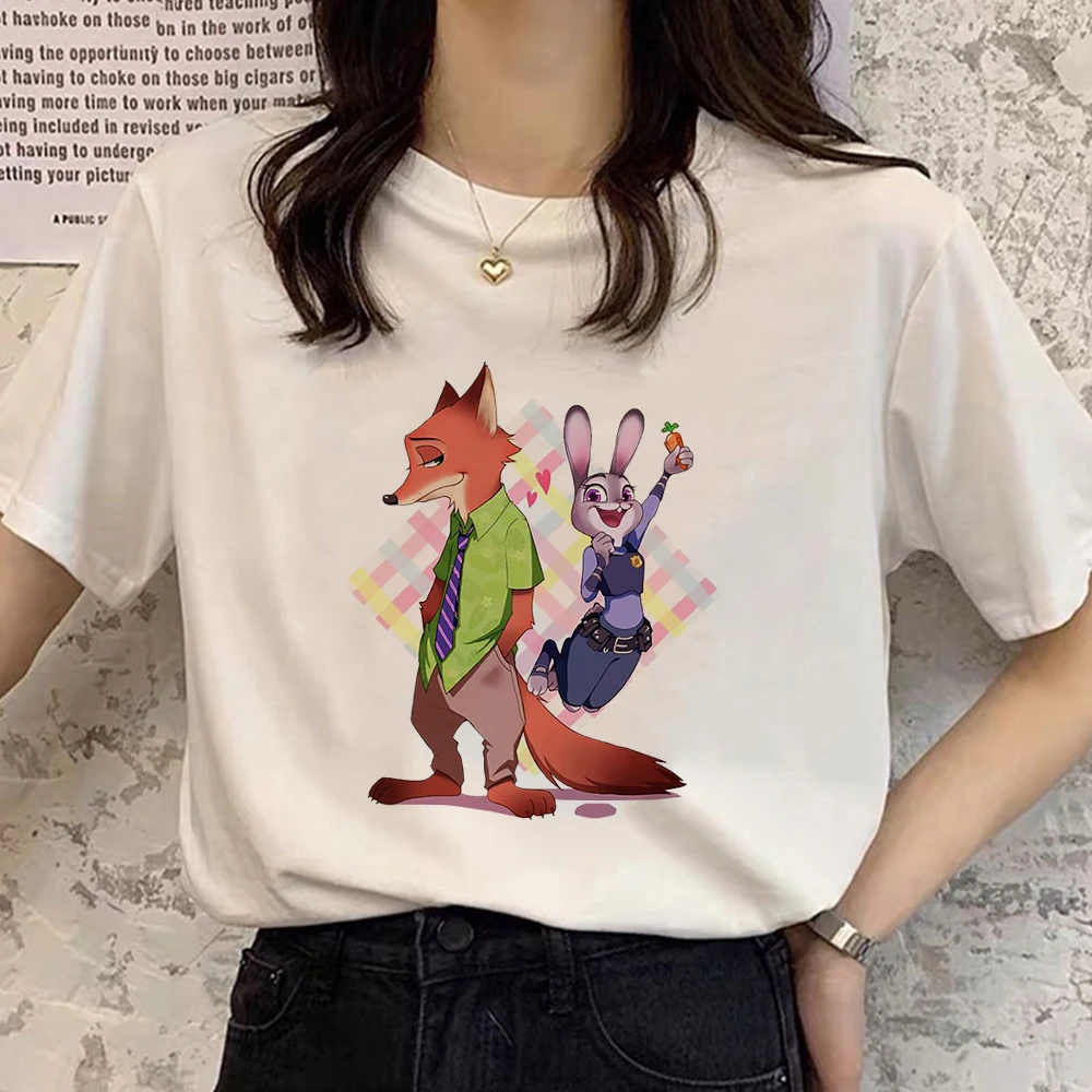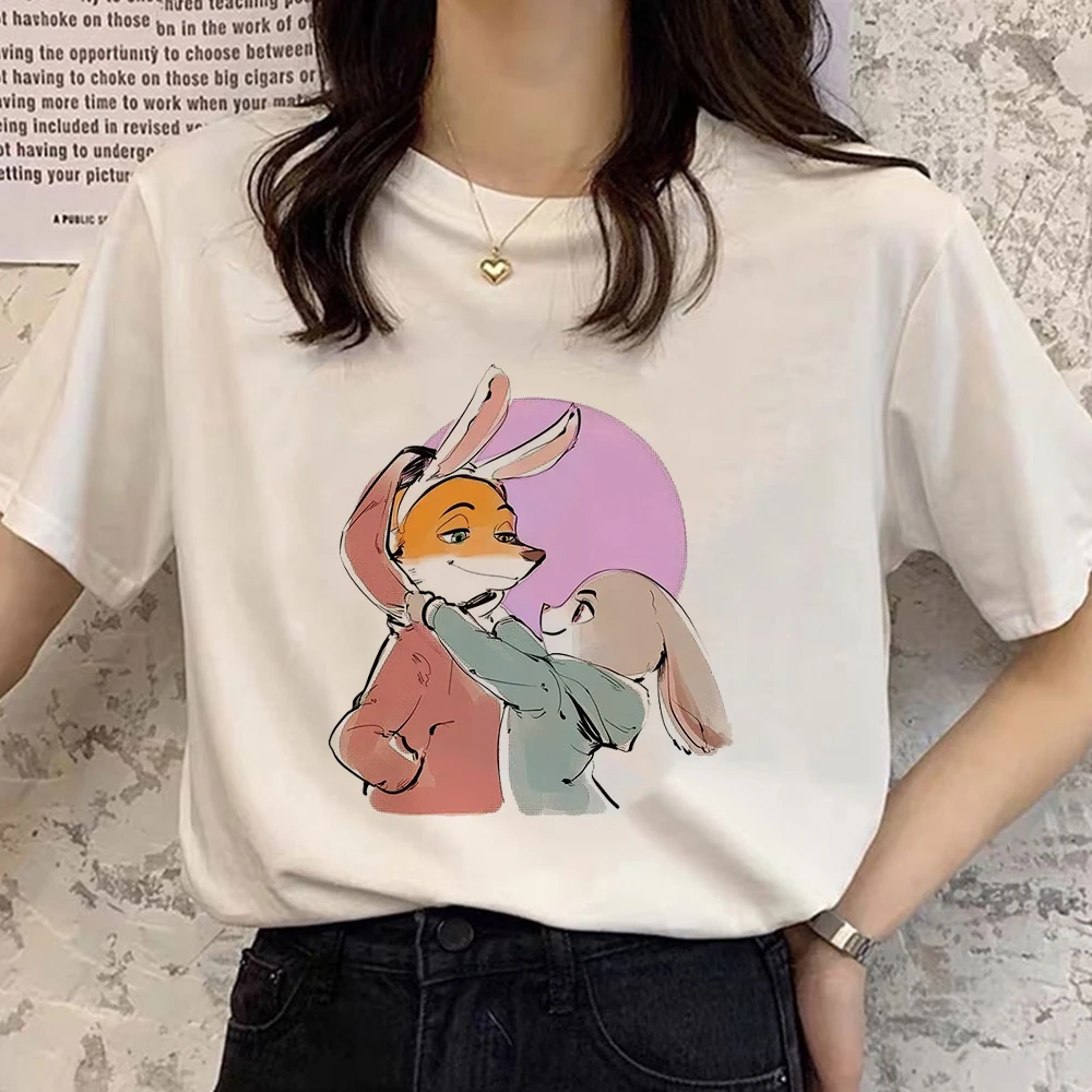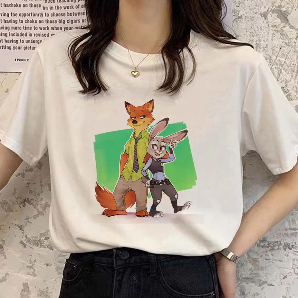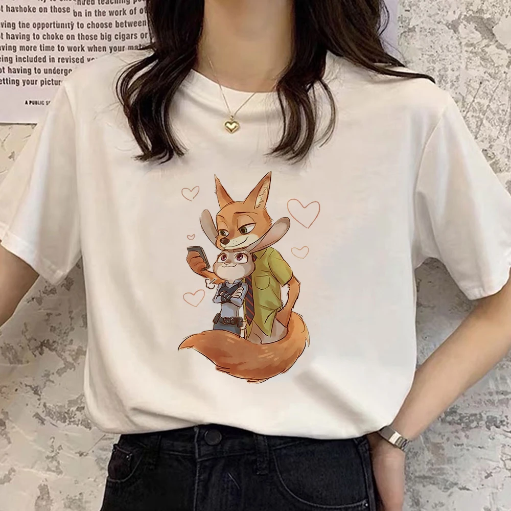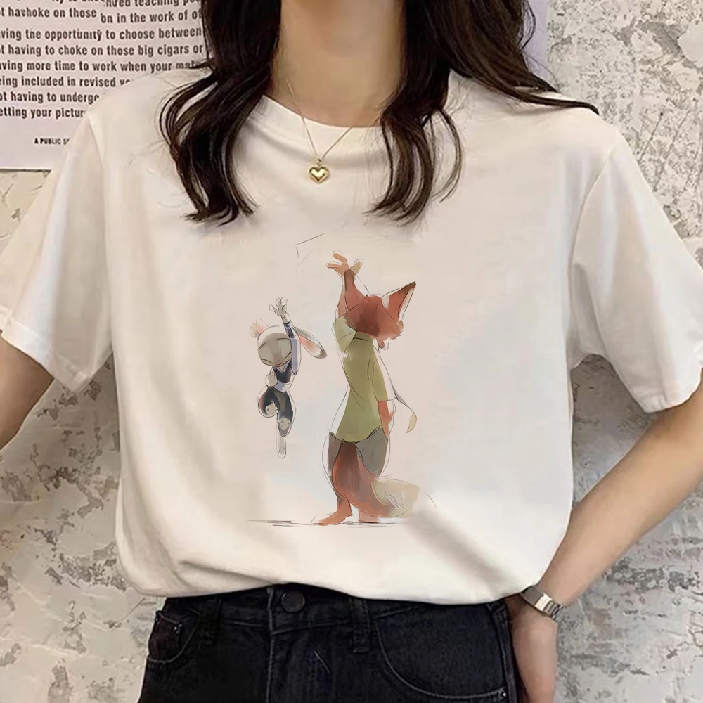 Летняя Милая стильная футболка с коротким рукавом Disney зверополис, Ник лиса Джуди с принтом кролика, повседневный Топ в стиле Харадзюку