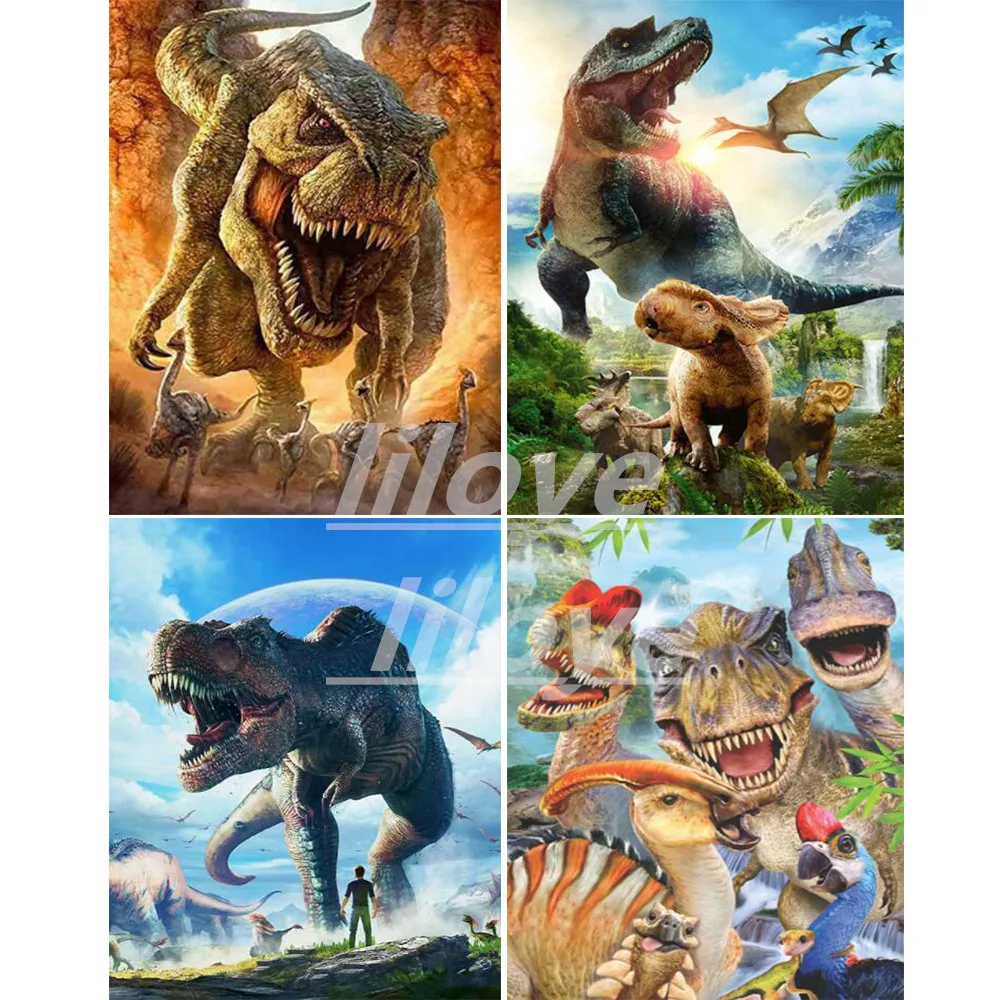 Алмазная 5D живопись сделай сам, картина с динозавром, квадратнаякруглая вышивка с животными, мозаика, украшение для дома