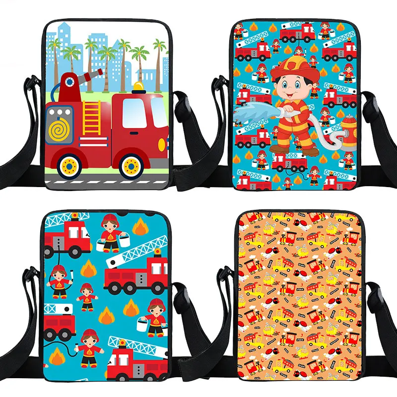Сумка-мессенджер с мультяшным рисунком пожарного двигателя, автомобиля, экскаватора, Женская Аниме Сумка с принтом пожарного, маленькая сумка, Повседневная сумка через плечо, подарок
