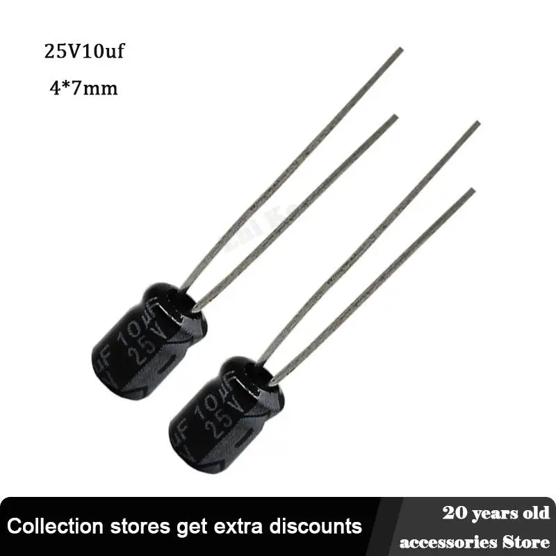 Алюминиевый электролитический конденсатор с низким ESR 10 мкФ 25 V 4x7 мм, электрические конденсаторы 20%, 50 шт.