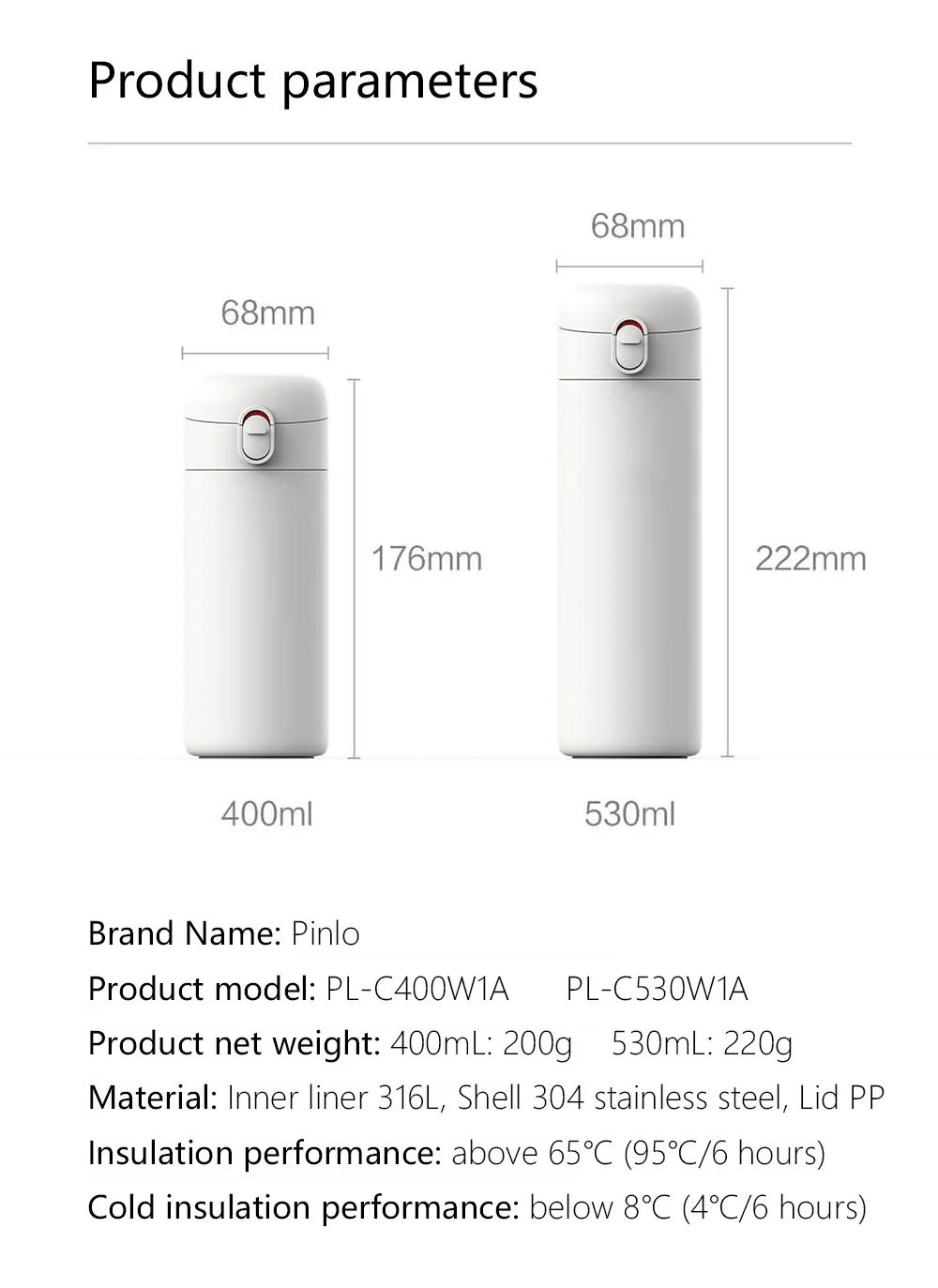 Термос Xiaomi Pinlo, портативная Вакуумная чашка из нержавеющей стали, фляжка, бутылка для воды с изоляцией, кружка с одной ручкой, 400 мл, 530 мл