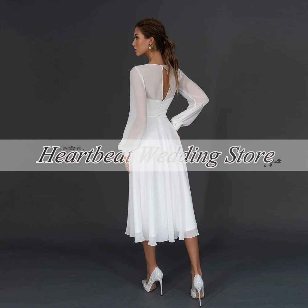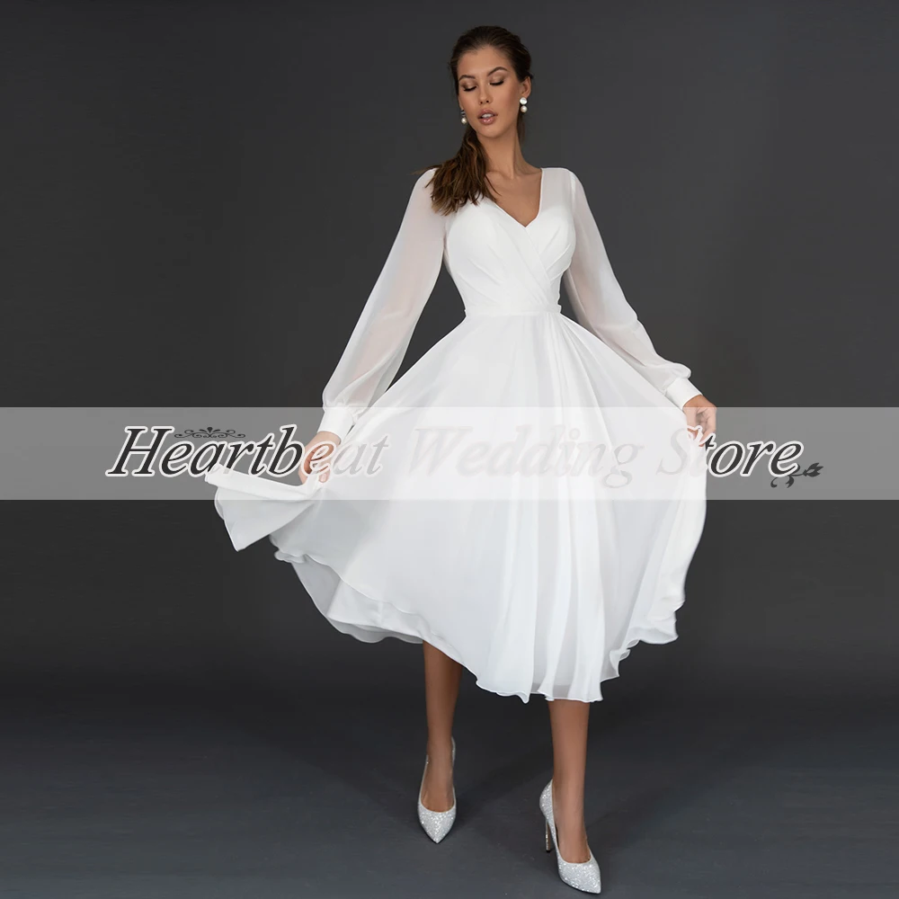 Женское шифоновое платье с пышными рукавами, элегантное простое летнее платье невесты со складками, длиной ниже колена, белое пляжное платье