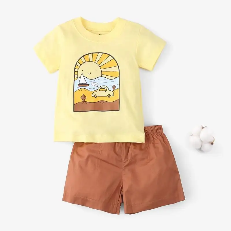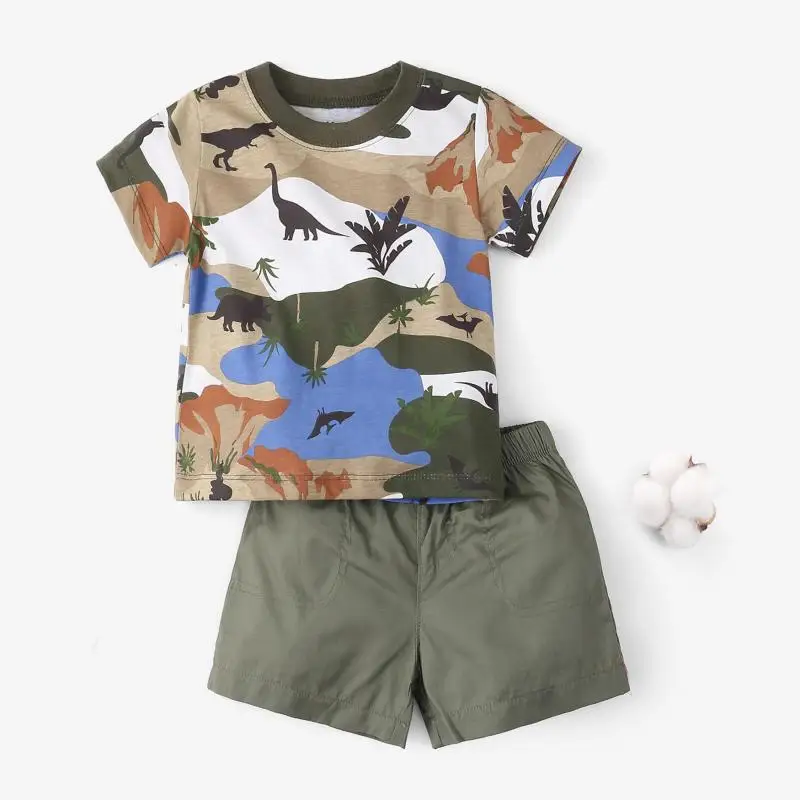 2022 новые летние комплекты одежды для маленьких мальчиков, топы с короткими рукавами + шорты, хлопковые комплекты для новорожденных из 2 предметов, хлопковая одежда с круглым вырезом для 0-24 месяцев