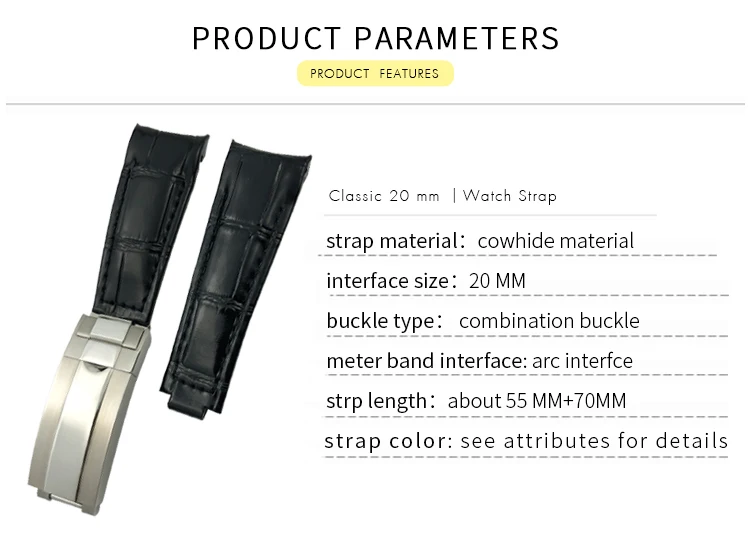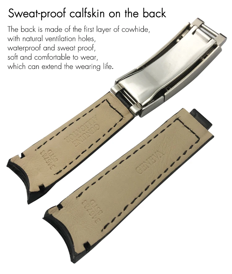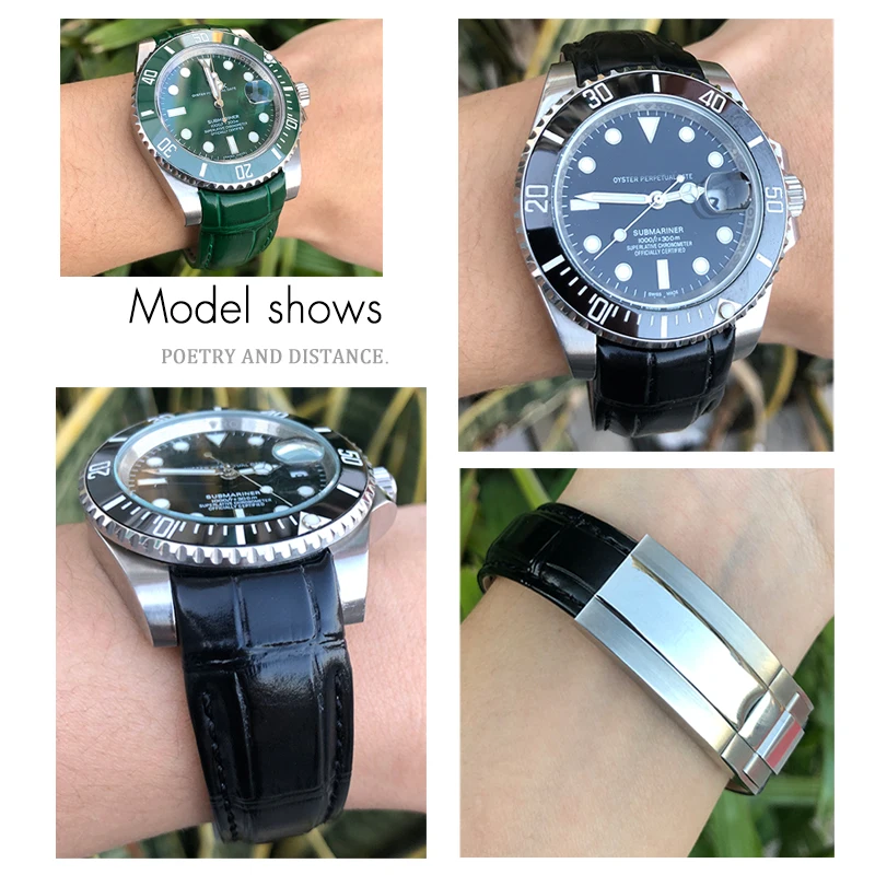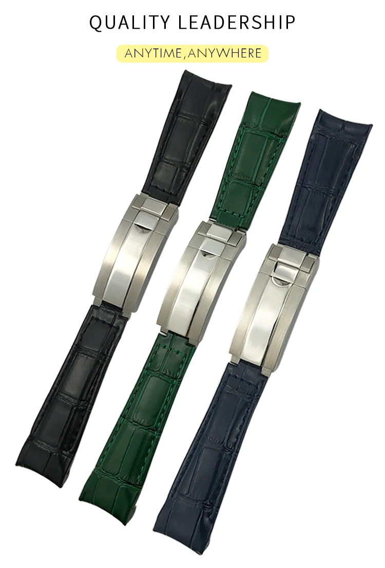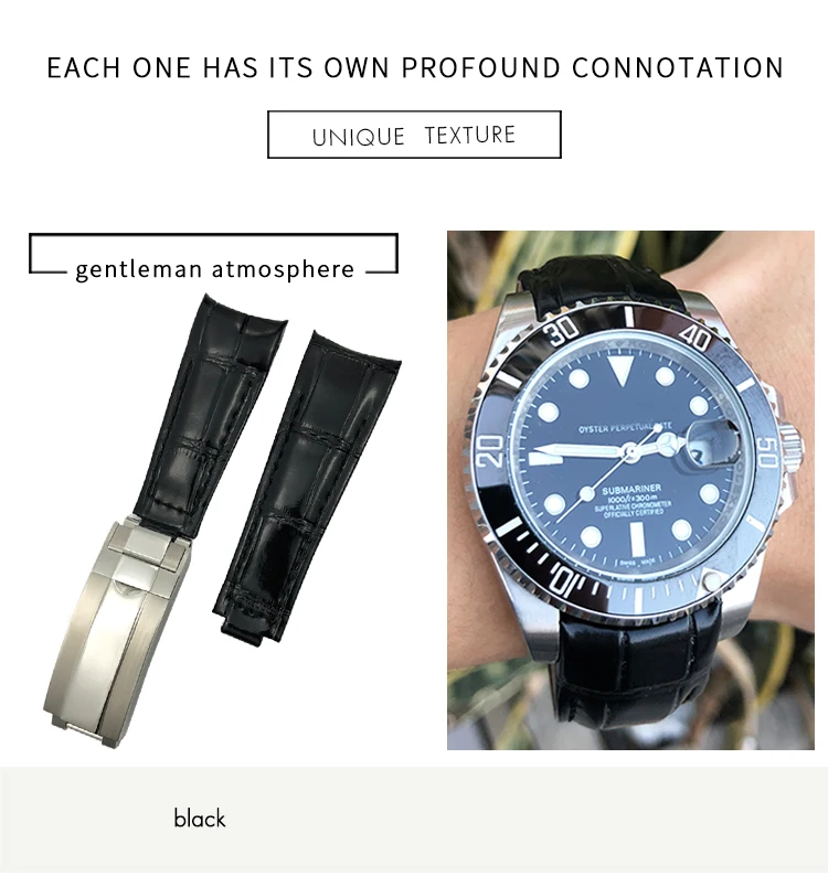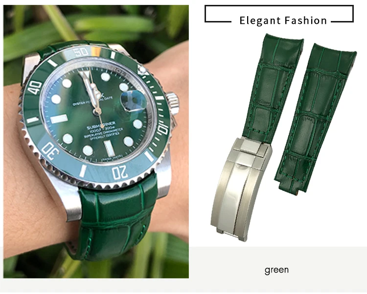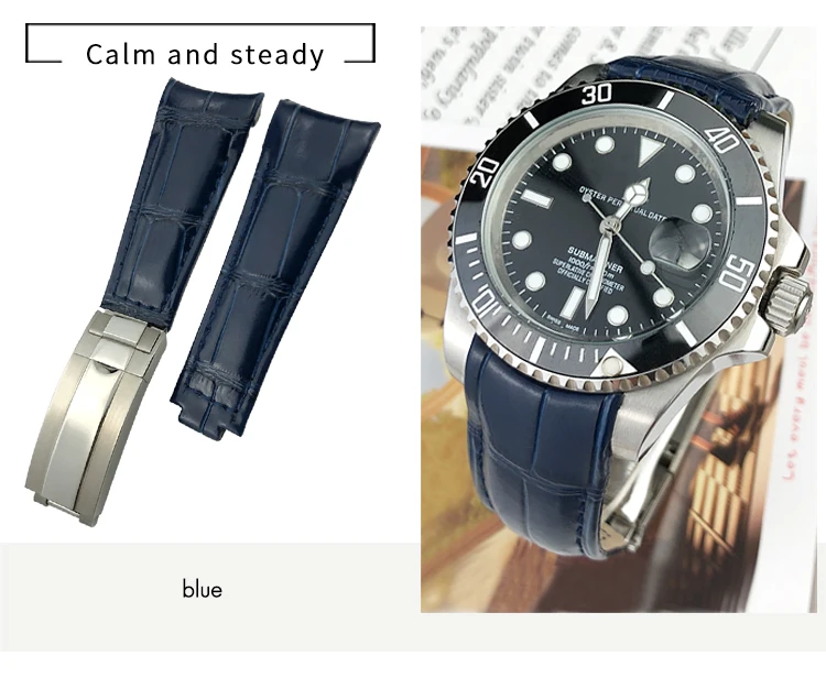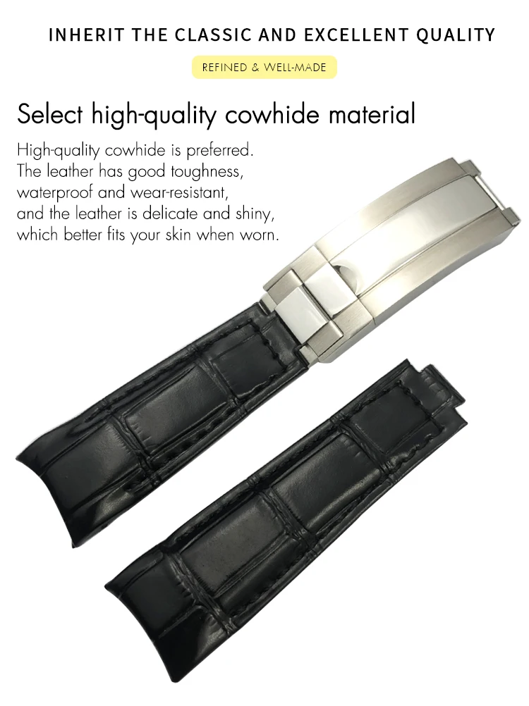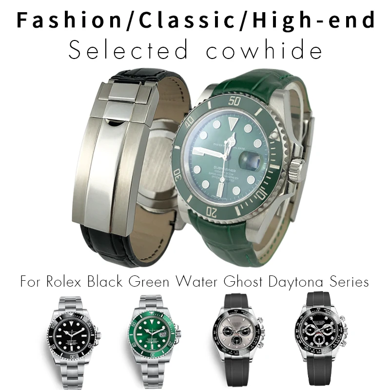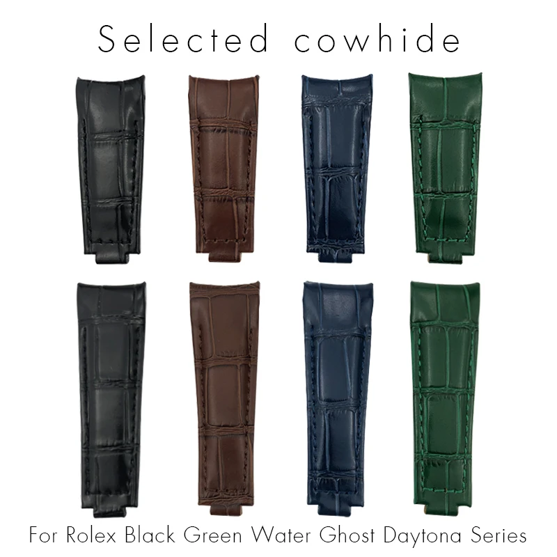 Высококачественный ремешок из натуральной воловьей кожи с изогнутым концом для часов Submariner DAYTONA GMT Oysterflex Rolex 20 мм ремешок для часов