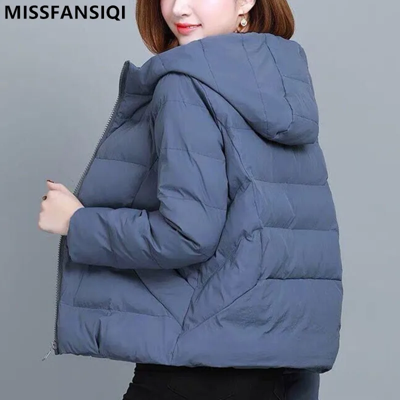 Женское пальто с хлопковой подкладкой MISSFANSIQI, модная верхняя одежда с капюшоном, повседневное однотонное пальто, короткая стильная куртка для осени и зимы