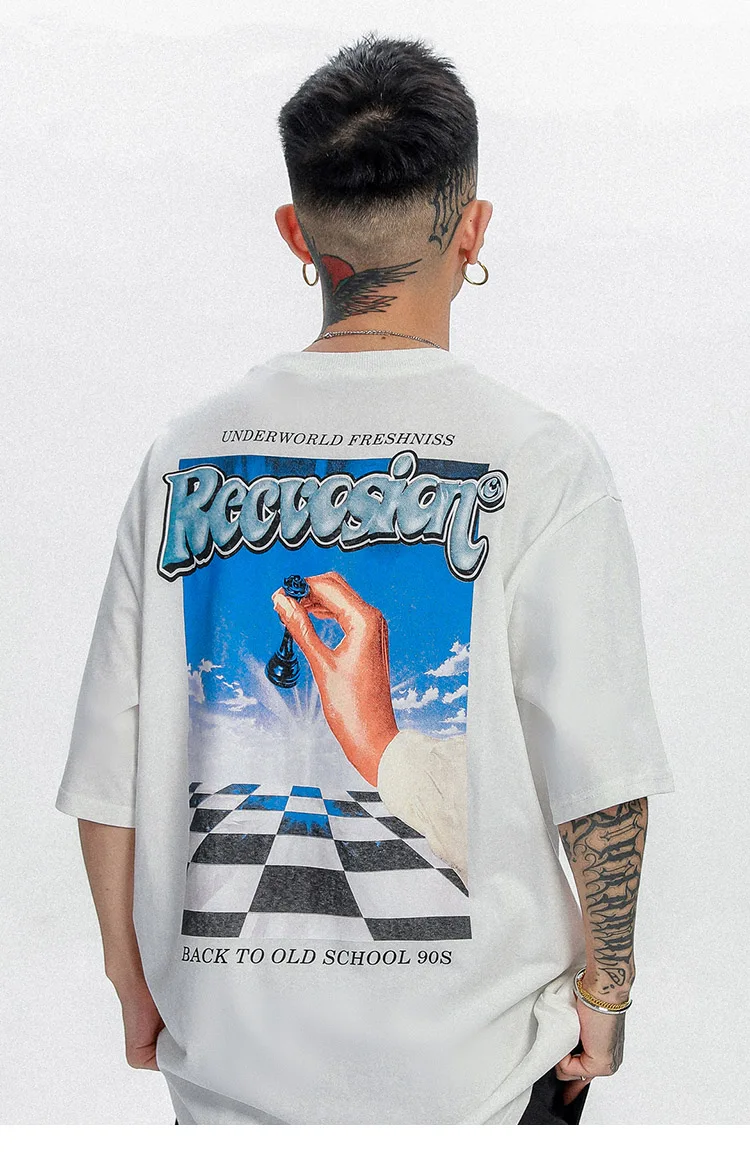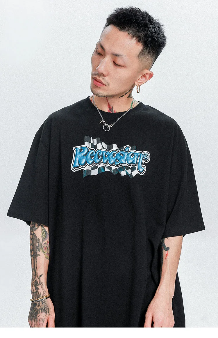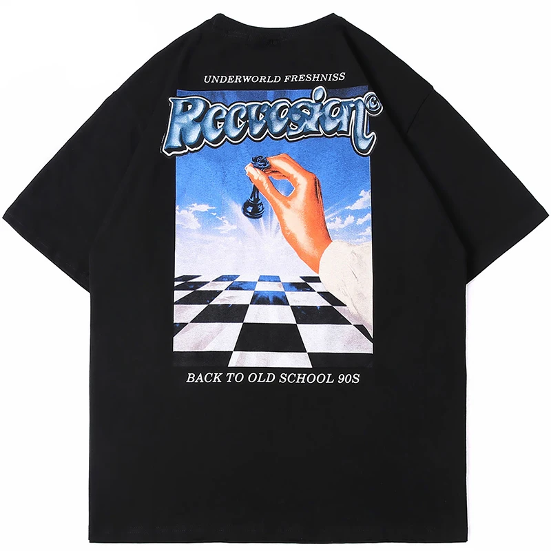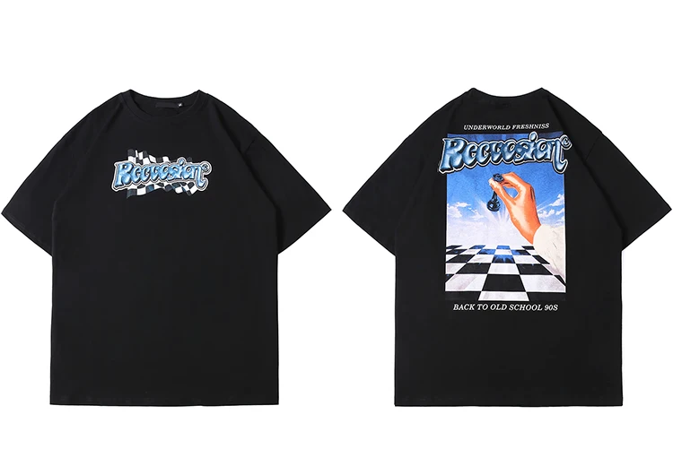 Футболка женская оверсайз в стиле хип-хоп, уличная одежда в стиле Харадзюку с шахматными надписями, хлопковая Свободная рубашка с коротким рукавом, на весну-лето
