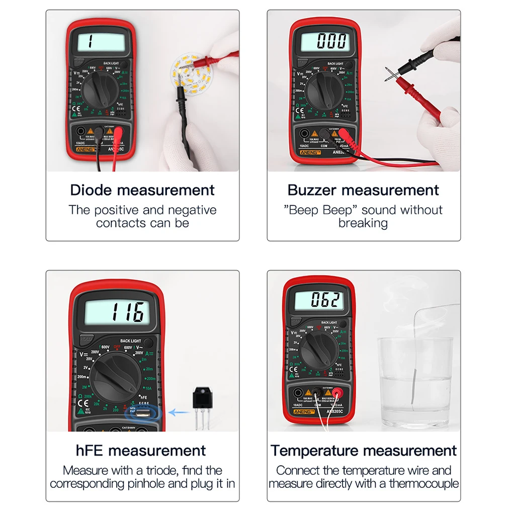 Мультиметр ANENG AN8205C с цифровым дисплеем и подсветкой, электронный детектор переменногопостоянного тока, вольтметр, измеритель температуры