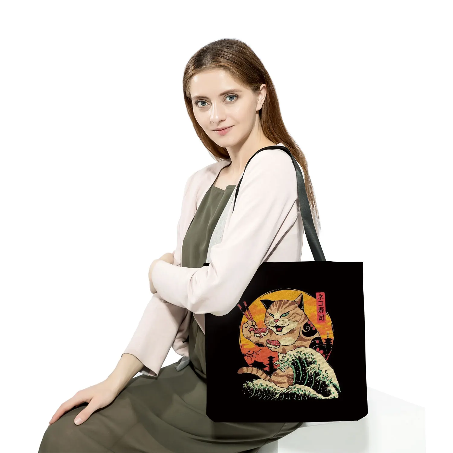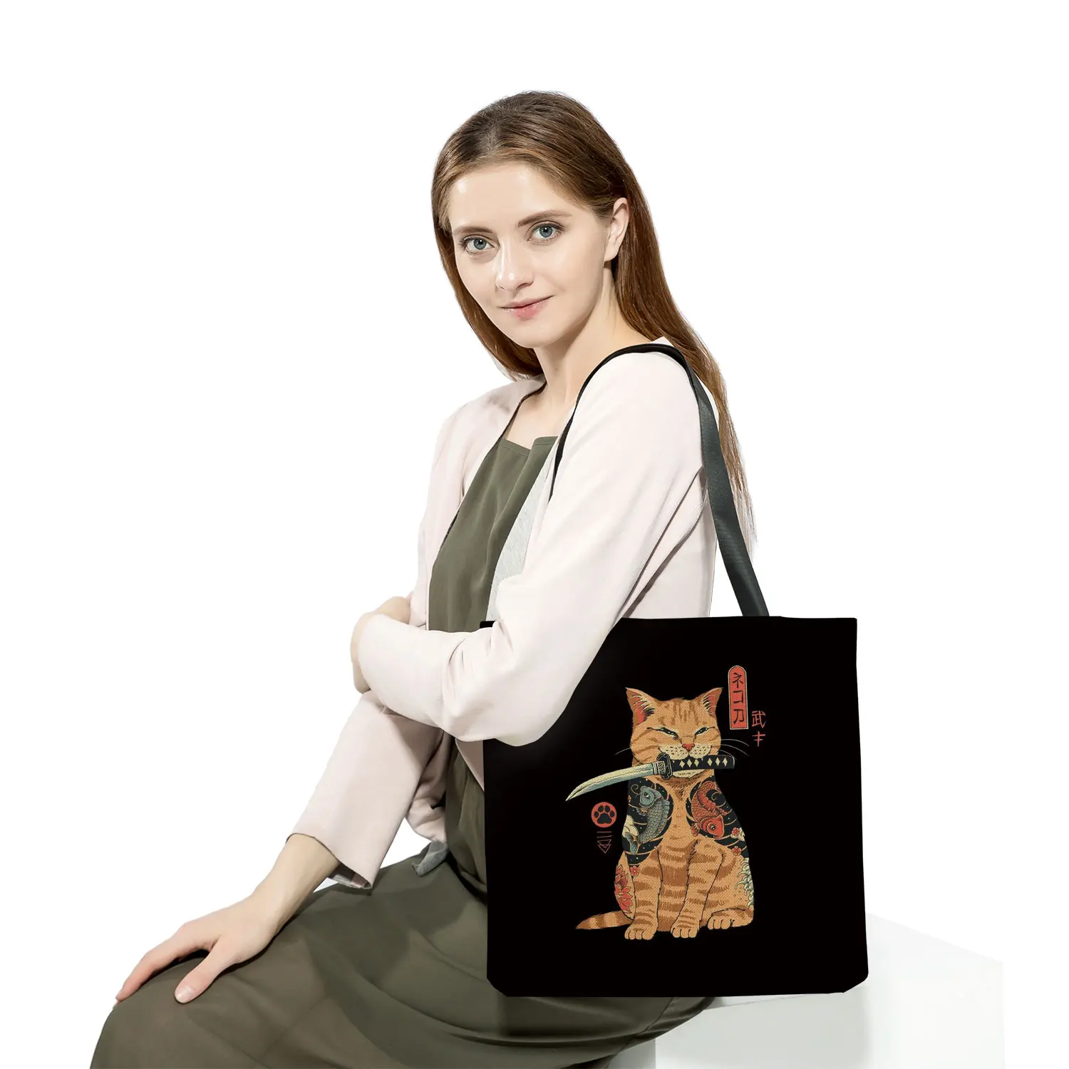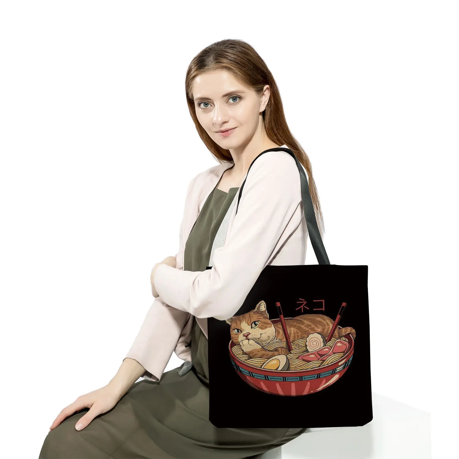 Женская сумка с принтом кота из японского аниме, брендовая сумка на плечо с верхней ручкой, роскошная дизайнерская сумка-тоут, большая дорожная сумка на молнии