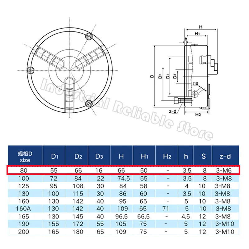 Токарный патрон sanou K11-80, Самоцентрирующийся металлический патрон 80 мм 3 дюйма, реверсивная закаленная сталь