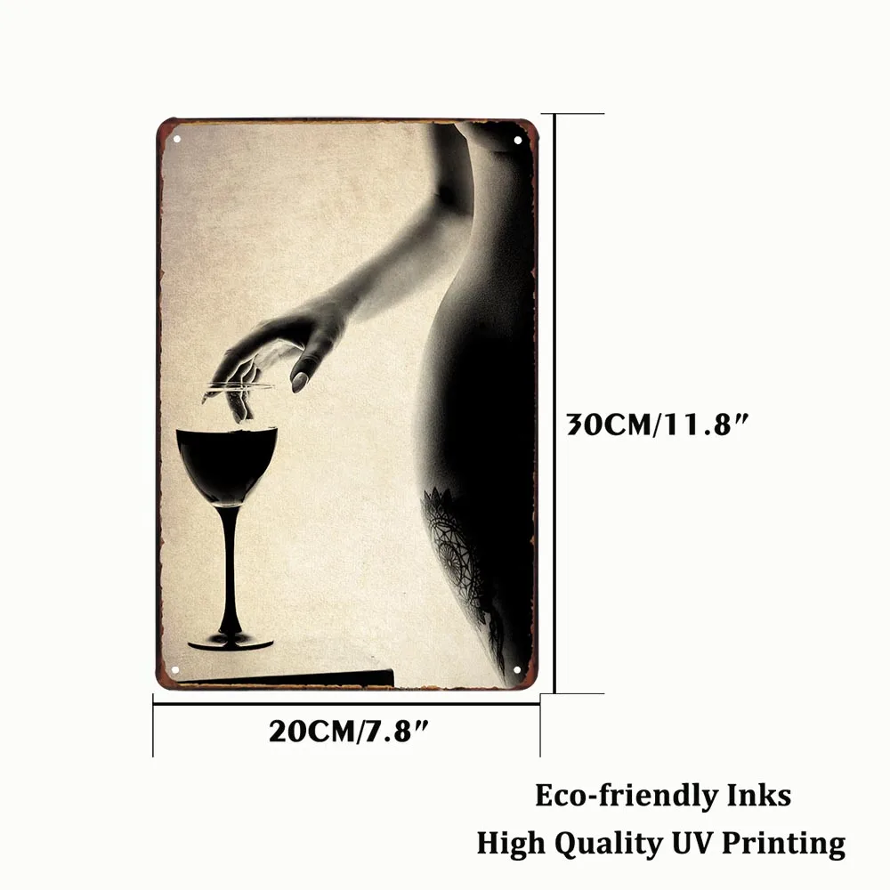 Красное вино Оловянная живопись железные мужчины сексуальные женщины ВИНТАЖНЫЙ ПЛАКАТ украшение Бар Паб Клуб человек пещера металлический настенный Декор табличка 20x30 см