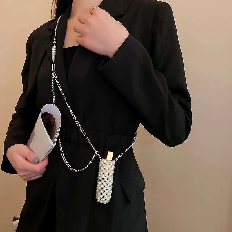Новое ожерелье RUANME2022 с косым крестом из жемчуга, сумочки, Женская цепочка на свитер, украшения для сауны