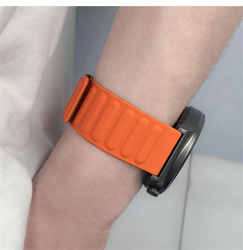 Спецификация:Материал: силикон и встроенный магнитныйШирина ремешка часов: 22 мм20 мм ремешок для часовРазмер запястья: унисексПосылка включает в себя:1 ремешок для часов