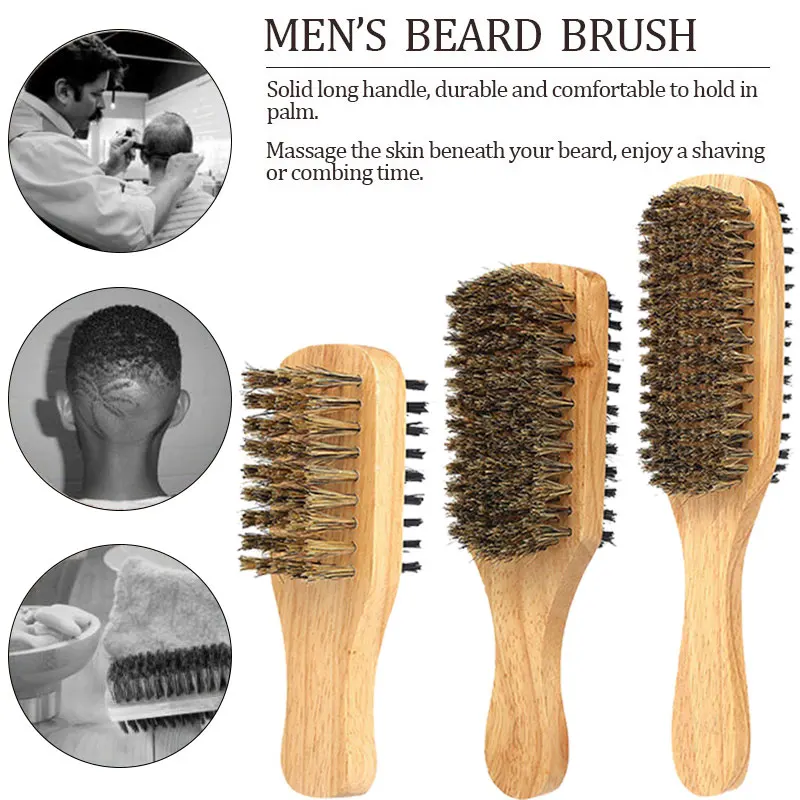 Уход за волосами Мужская двухсторонняя щетинка из свиной щетины с деревянной ручкой Мужская Расческа для бороды щетка для укладки