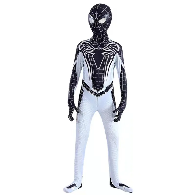Детский женский костюм для косплея, костюм на Хэллоуин, комбинезон с белым Пауком, боди для мальчиков, вечернее платье