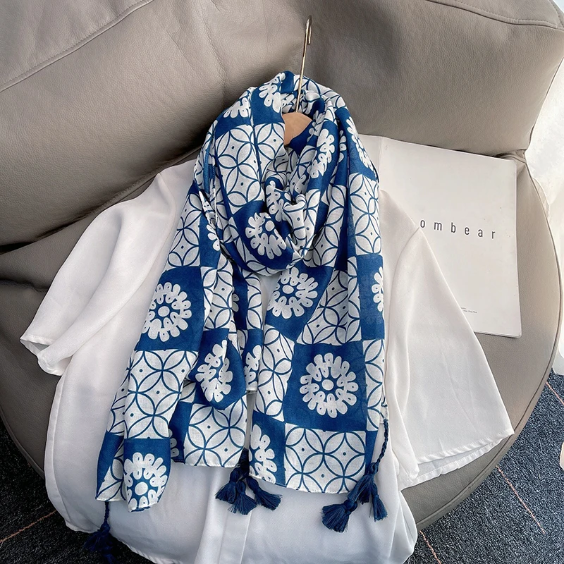2022 модный Абстрактный Цветочный шарф с рисунком Пейсли и кисточка...