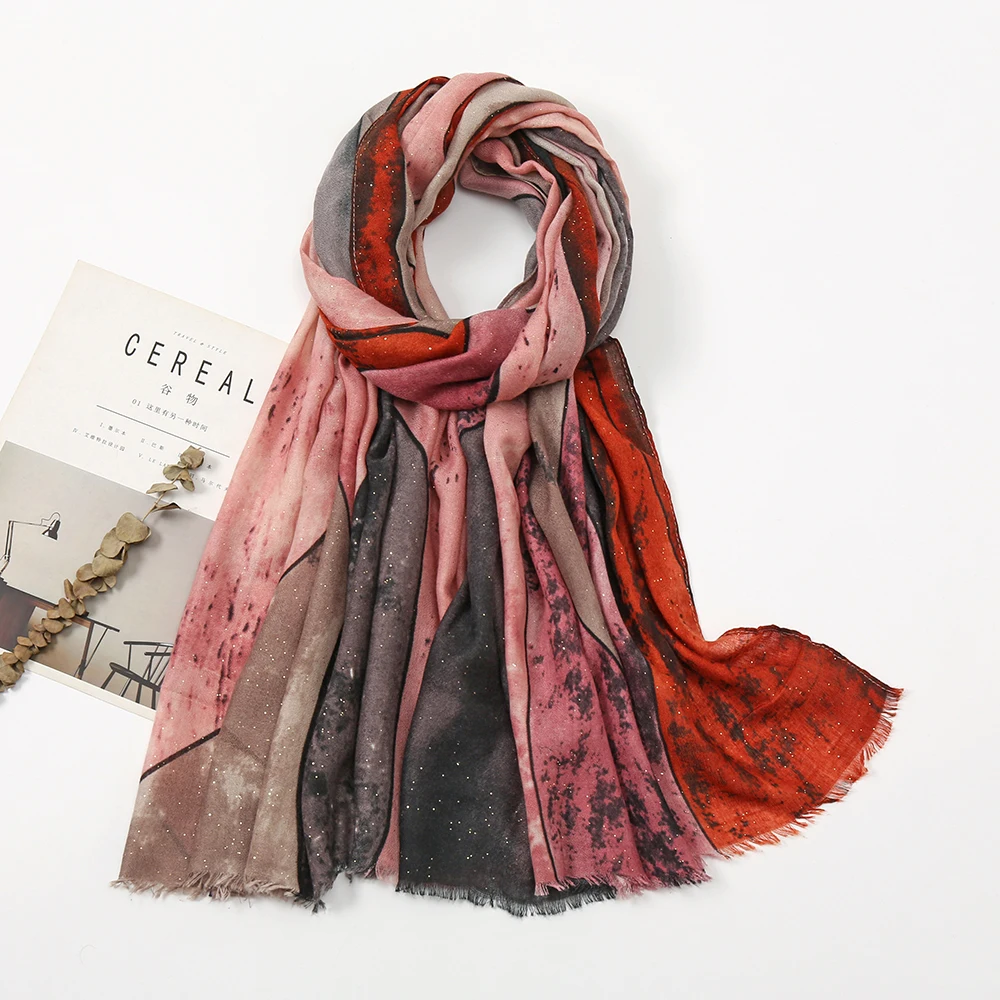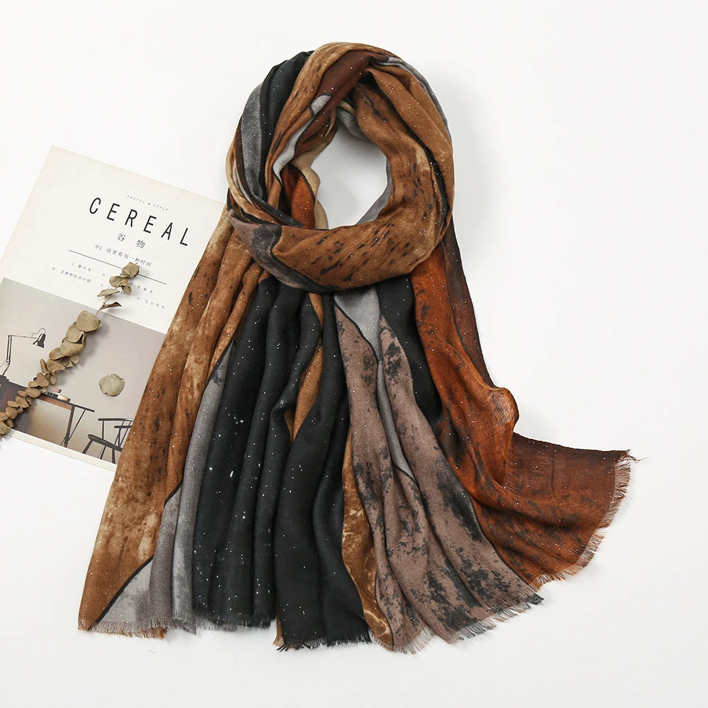 Модный Роскошный бренд Ombre Цвет Блокировка кисточка шаль из виско...