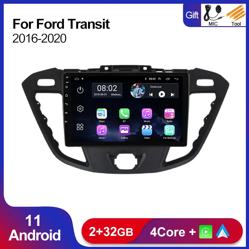 Автомобильный мультимедийный плеер, 4 ядра, 2 + 32 ГБ, для Ford Transit Tourneo Custom 2016-2020, Android 11, радио, стерео, GPS-навигация Carplay, Wi-Fi