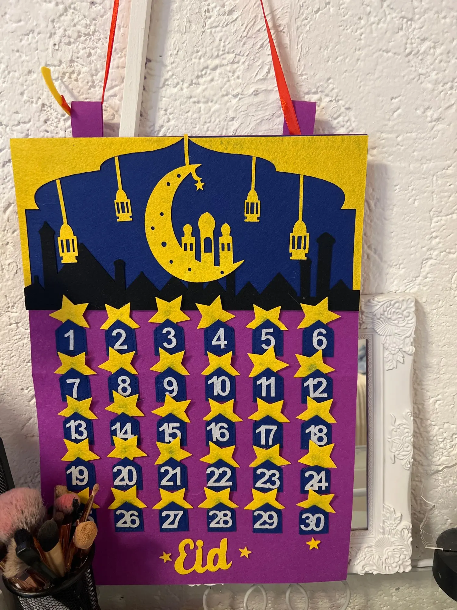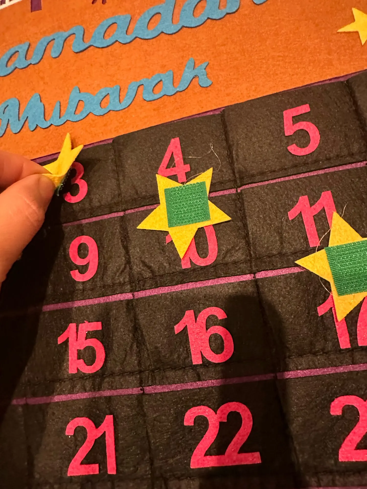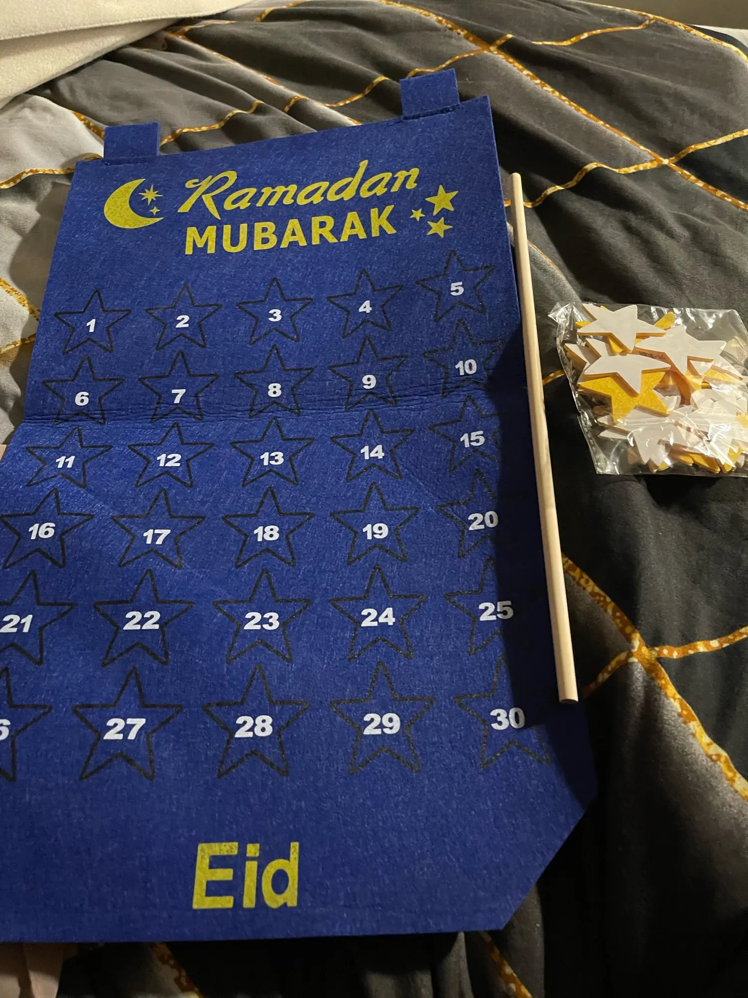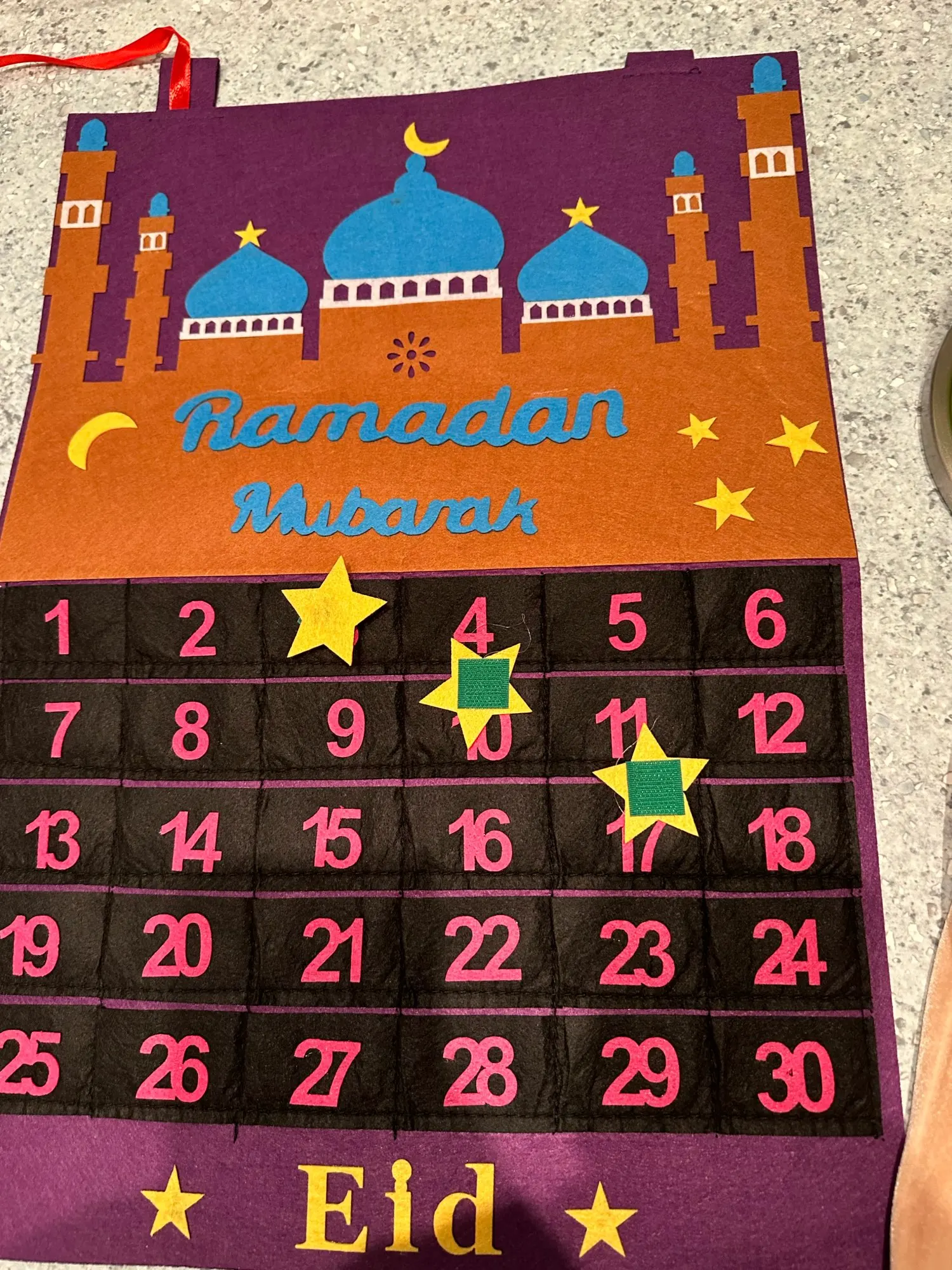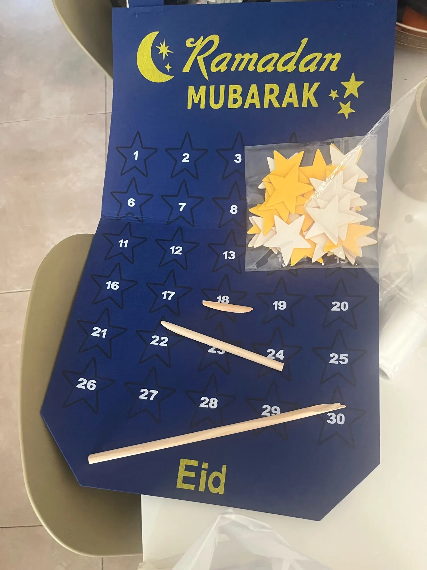 Вот отличная идея, которая, по крайней мере, похожа на календарь Avent, но которая позволит моим детям иметь возможность иметь очень хорошие записи во время Рамадана