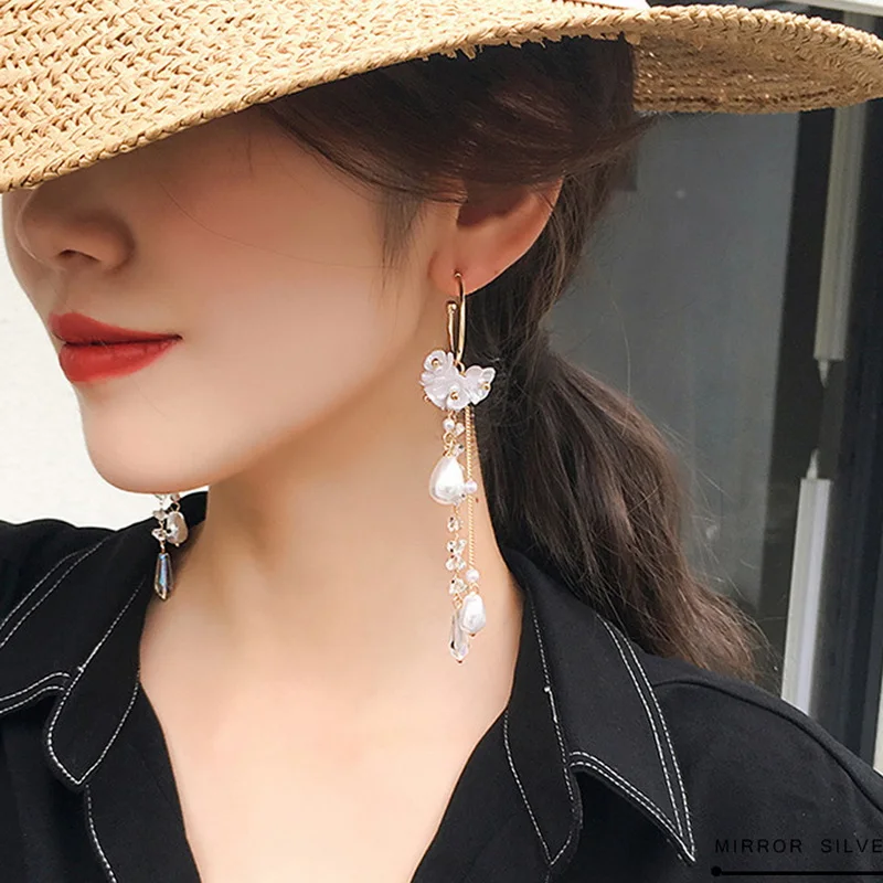 2022 Новые цветочные богемные висячие серьги, женские модные длинные серьги Стразы с кисточками, цветочные серьги, Женские Ювелирные изделия для свадебной вечеринки, подарок