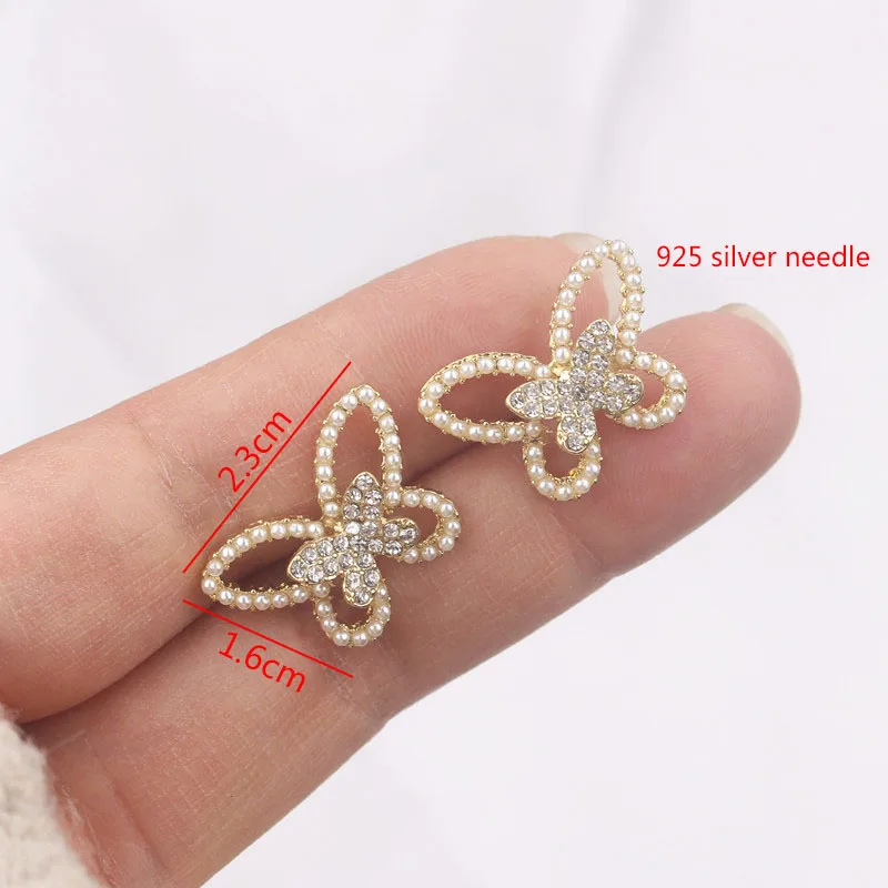 Жемчужные маленькие серьги-бабочки, корейские модные женские серьги-гвоздики, мини-серьги для девочек, украшения для вечеринок, бижутерия для женщин