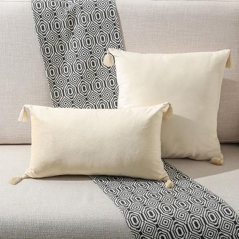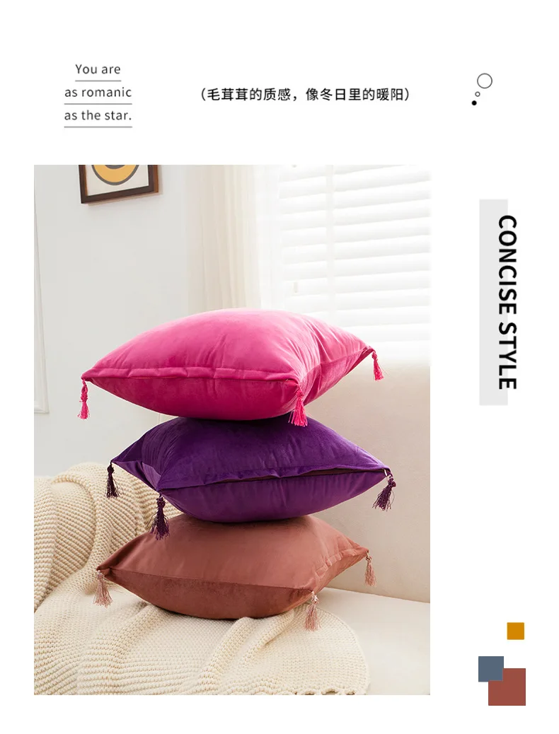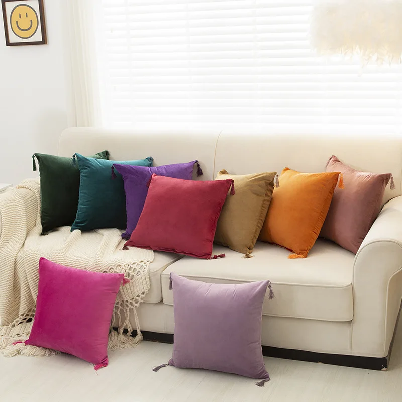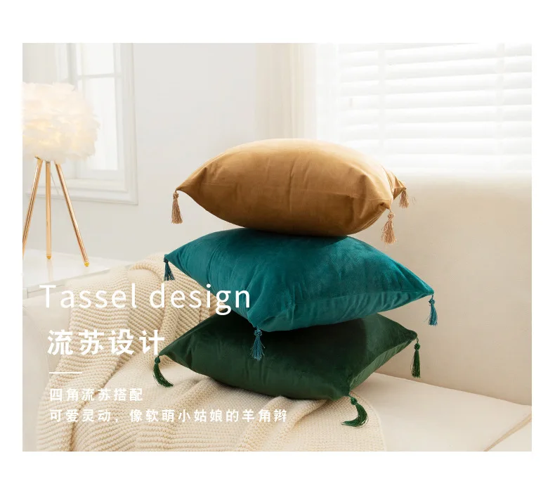 Однотонная наволочка 45x45 30x50, бархатная Женская наволочка для дивана, роскошные бархатные наволочки с кисточками