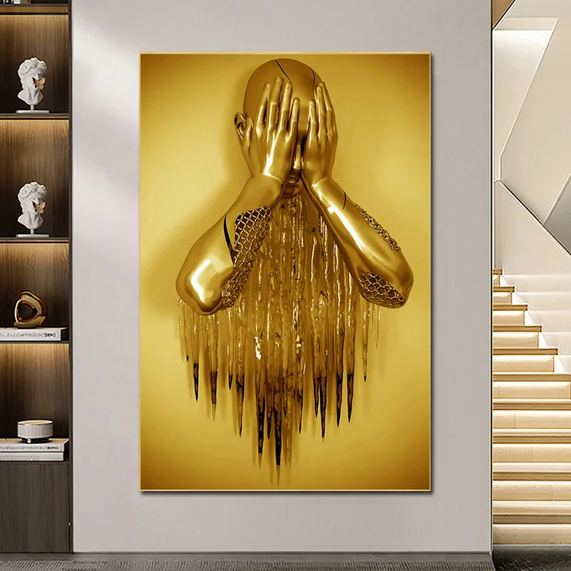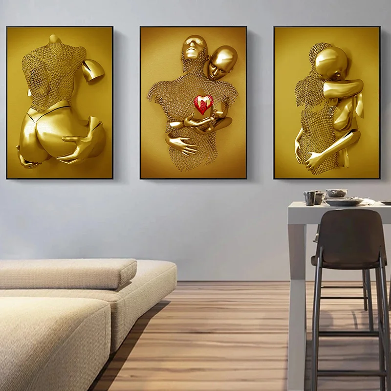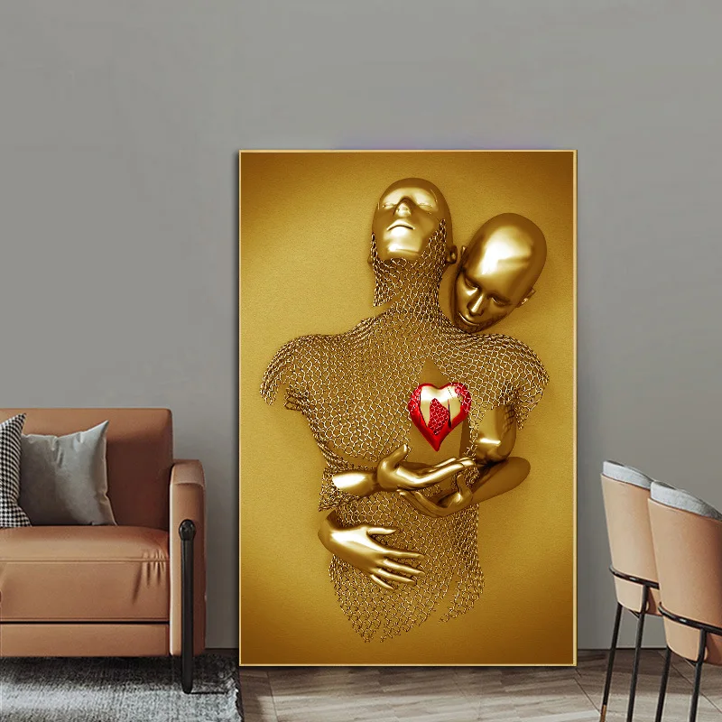 Плакаты и принты с изображением персонажей из металла, скульптура для пары, холст, современные трендовые настенные картины для домашнего декора